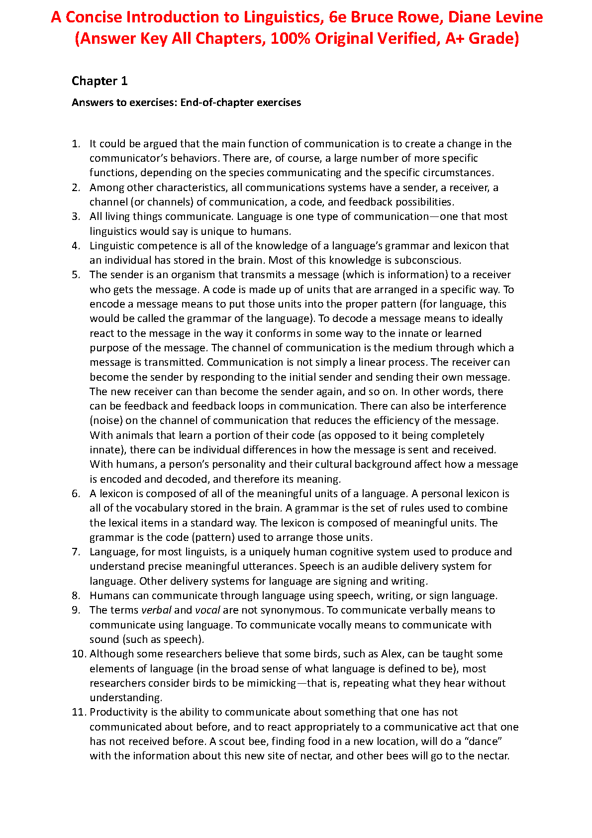 Solution Manual for A Concise Introduction to Linguistics, 6th Edition by Bruce M. Rowe and Diane P. Levine