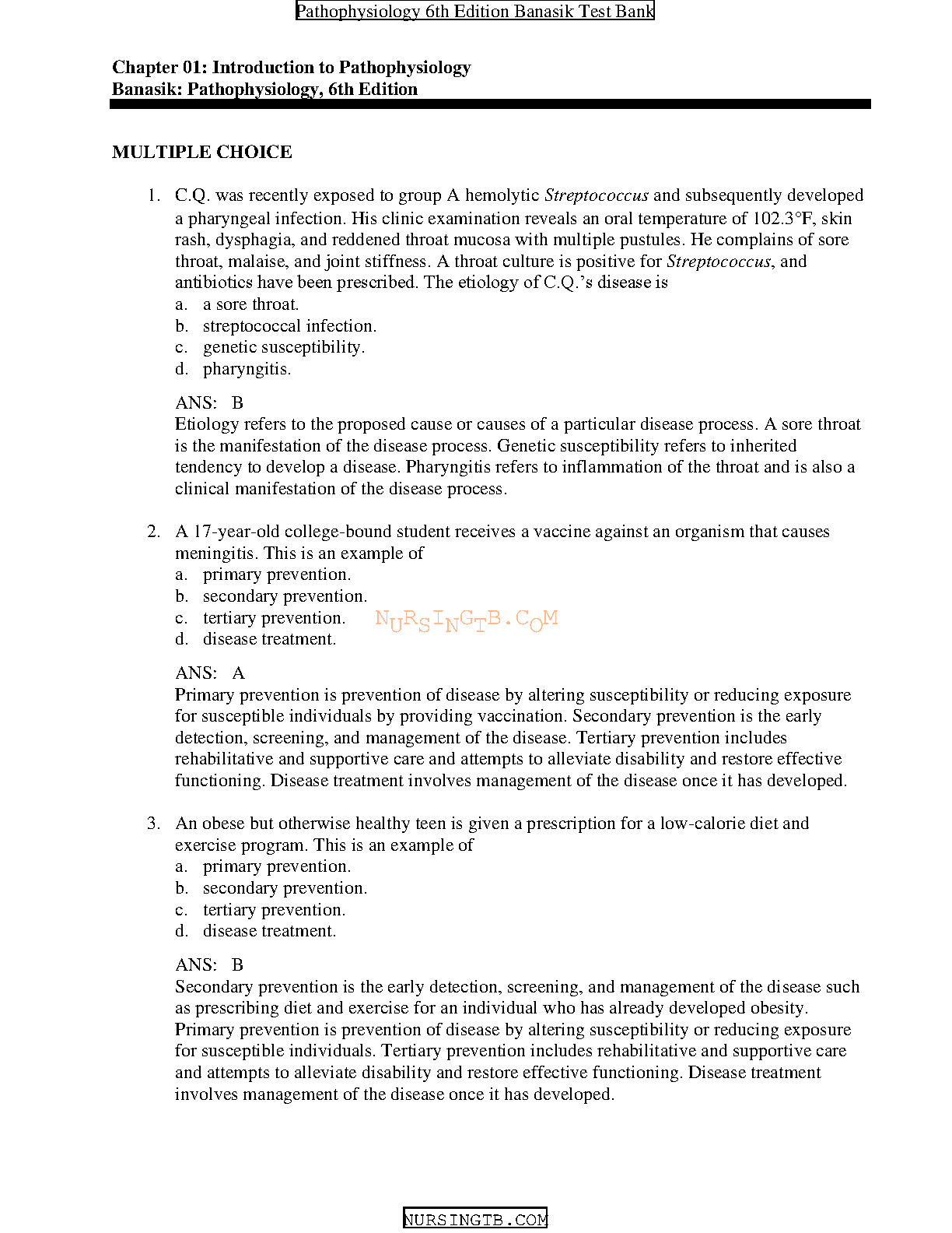 Test Bank for Pathophysiology, 7th Edition by Jacquelyn L. Banasik & Lee-Ellen C. Copstead-Kirkhorn