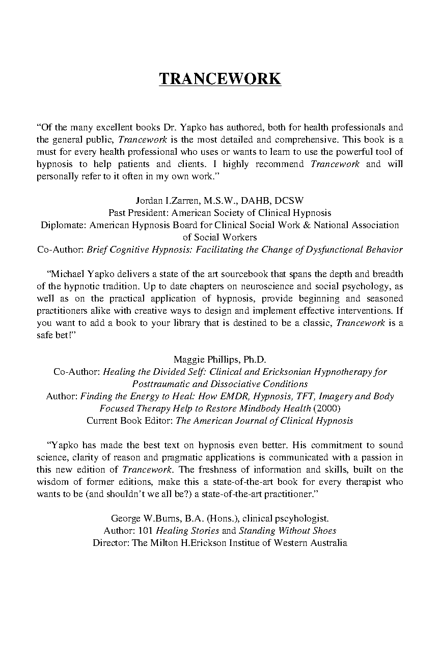 Unlock your potential and ensure exam success with the latest 2025/2026 academic resource for 'Trancework: An Introduction to the Practice of Clinical Hypnosis, 3rd Edition' by renowned expert Michael D. Yapko, Ph.D. This comprehensive guide is expertly designed to help you master the core principles and practical applications of clinical hypnosis, from foundational techniques to advanced strategies for treating anxiety, depression, and pain. Move beyond simple memorization and gain the deep, practical understanding needed to excel in your coursework and pass your exams on the very first attempt. Avoid the stress of resits with this essential study companion.