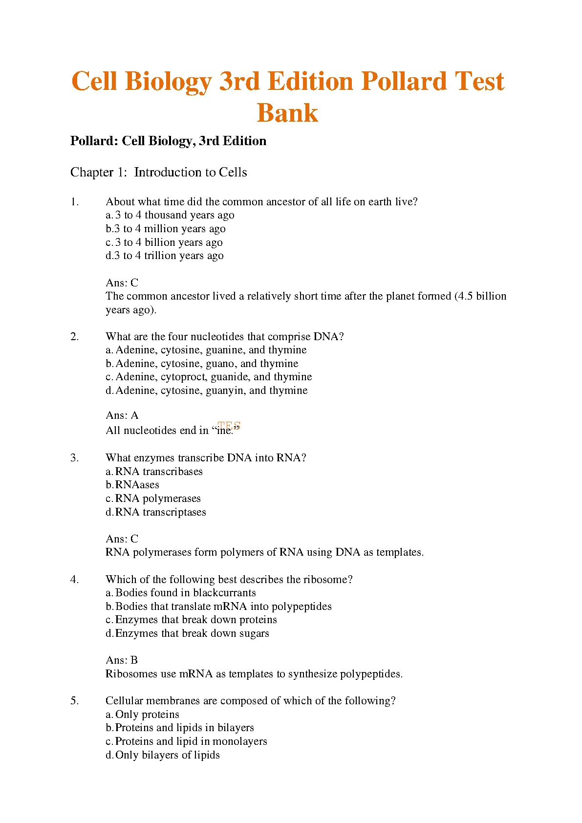 Cell Biology 3rd Edition BY Pollard Test Bank