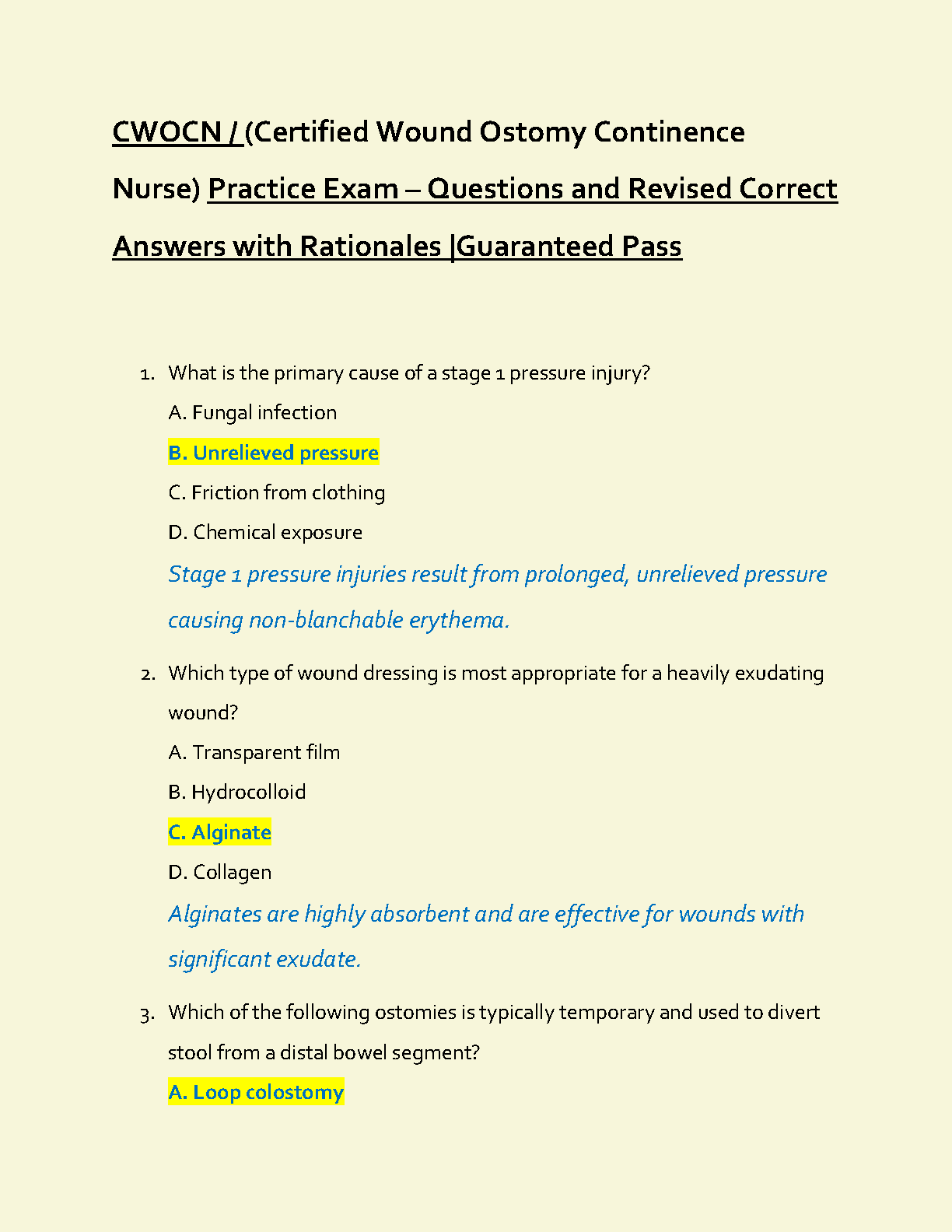 CWOCN Practice Exam Test Bank 2025/2026: Certified Wound Ostomy Continence Nurse Study Guide with Questions, Answers, and Rationales for First-Attempt Success