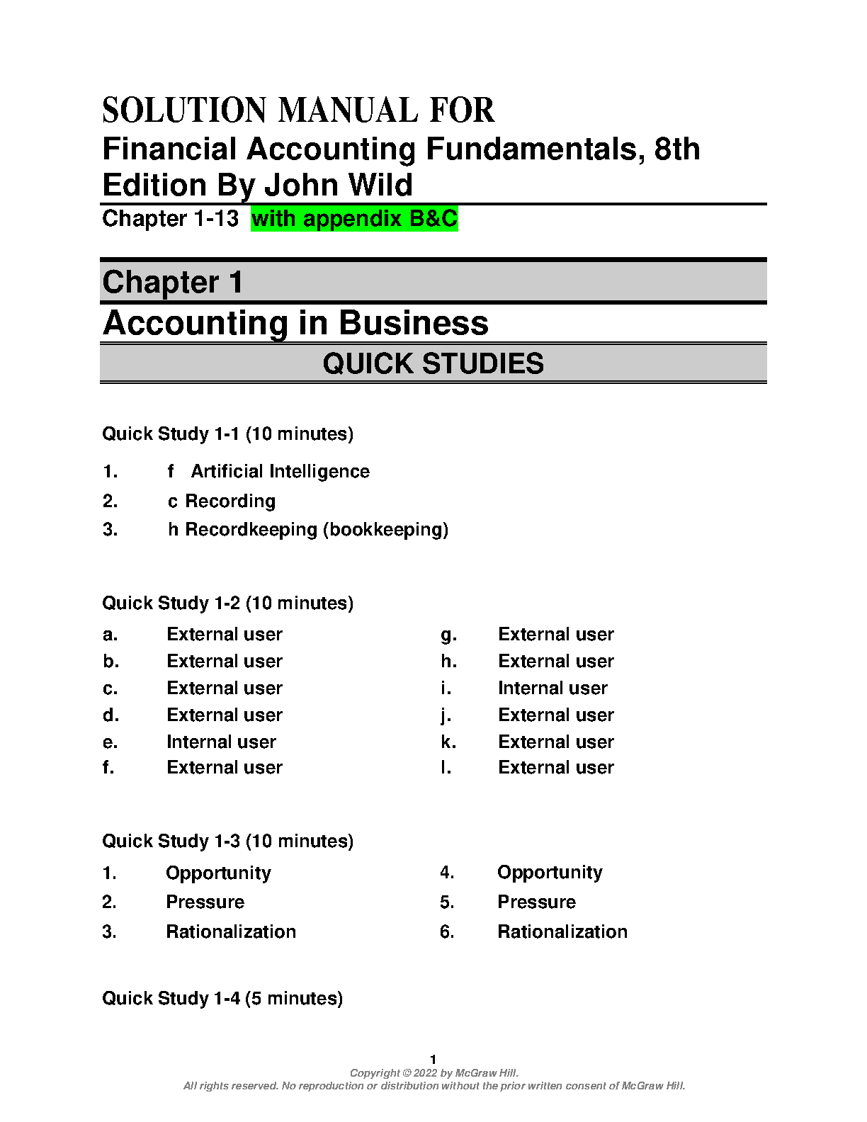 Solution Manual for Financial Accounting Fundamentals, 8th Edition by John J. Wild, Ken W. Shaw, and Barbara Chiappetta