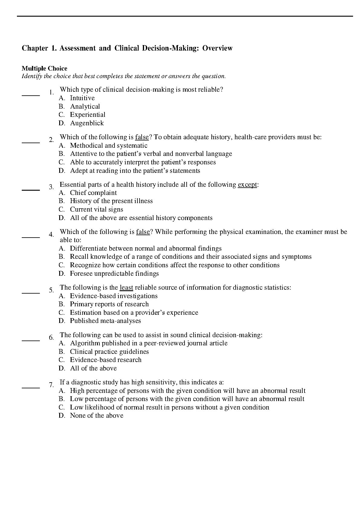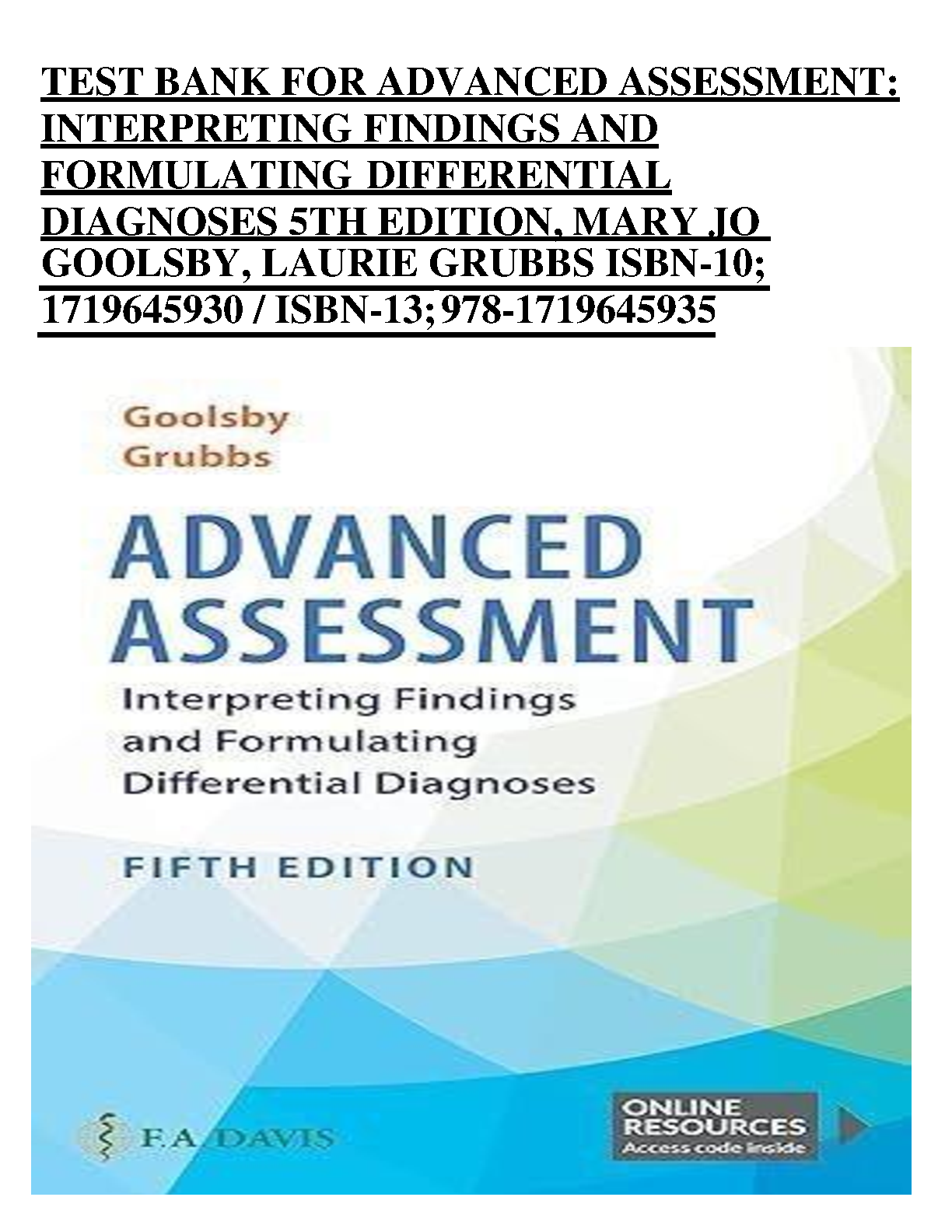 Test Bank for Advanced Assessment: Interpreting Findings and Formulating Differential Diagnoses, 5th Edition by Mary Jo Goolsby and Laurie Grubbs