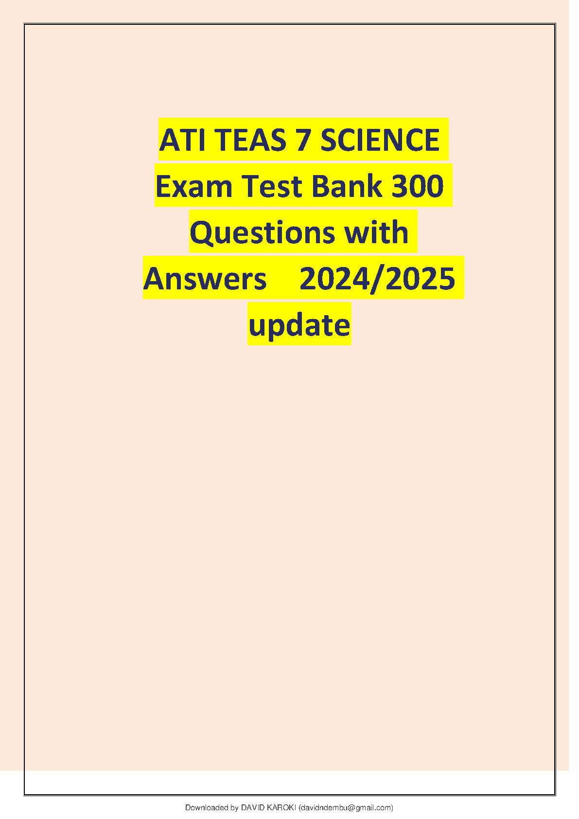 Prepare to excel on the science portion of the ATI TEAS 7 exam with our comprehensive and updated test bank for the 2024-2025 academic year. This essential study tool features 300 meticulously curated practice questions, each with a verified and correct answer. Covering all critical areas such as Human Anatomy and Physiology, Life and Physical Sciences, and Scientific Reasoning, this guide is designed to simulate the real exam experience. It's the perfect resource for aspiring nursing students aiming to achieve a high score and pass on their first attempt.