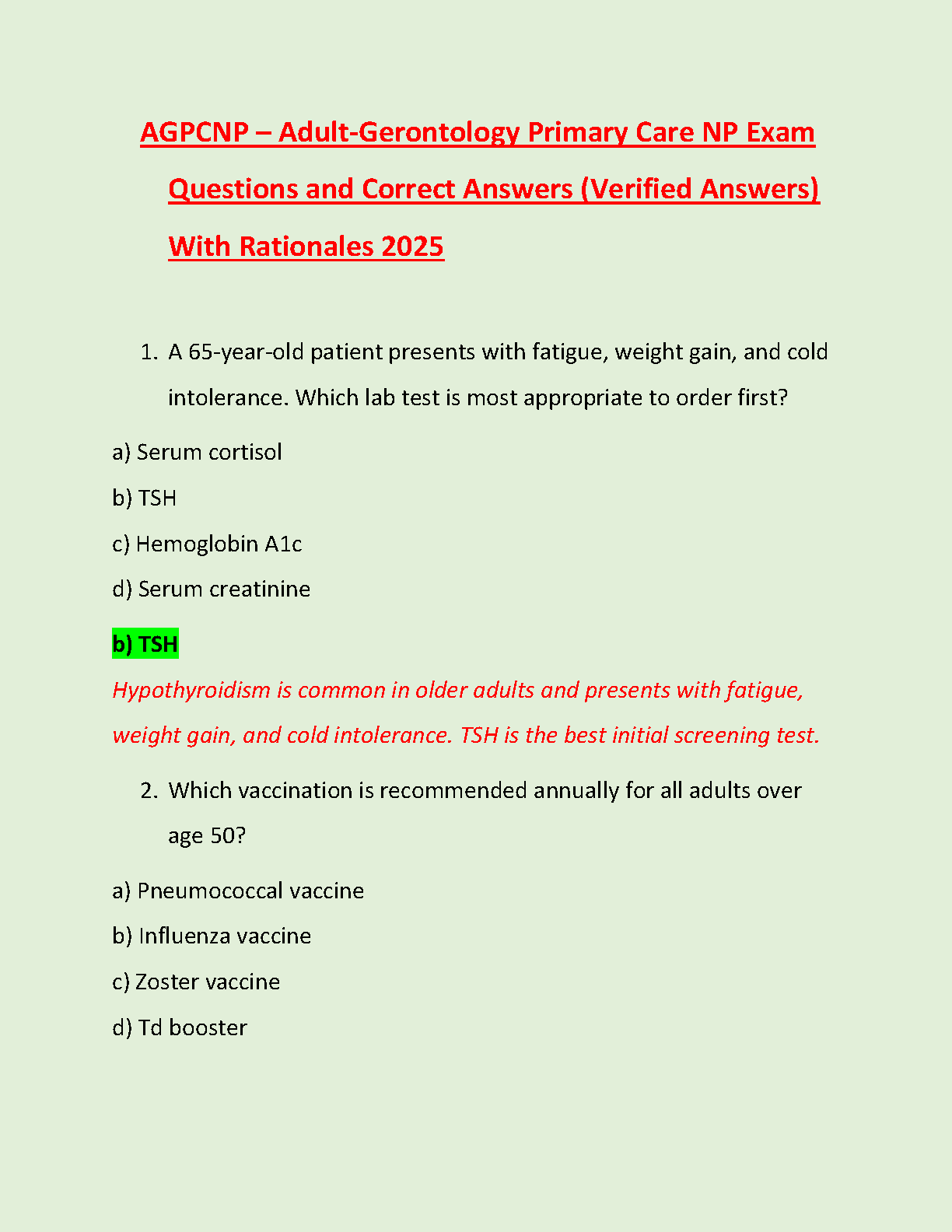 Get ready to ace your Adult-Gerontology Primary Care Nurse Practitioner (AGPCNP) certification exam! This comprehensive 2025 test bank is your ultimate study tool, packed with a wide range of practice questions covering all essential topics. Each question comes with a verified correct answer and a detailed rationale to deepen your understanding and solidify your knowledge. This resource is expertly designed to mirror the actual exam format, helping you build confidence and master the material needed to pass on your first attempt and launch your career as an AGPCNP.