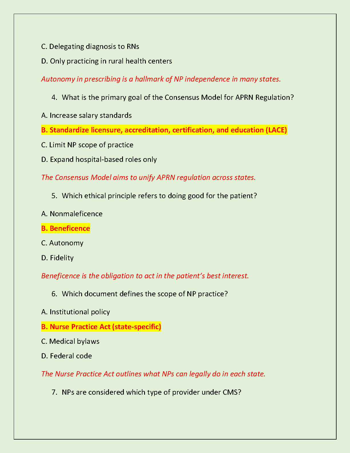 NRNP 5050 Role of the Nurse Practitioner Final Exam 1: 2025/2026 Edition with Updated Questions, Correct Answers & Detailed Rationales for a Guaranteed Pass
