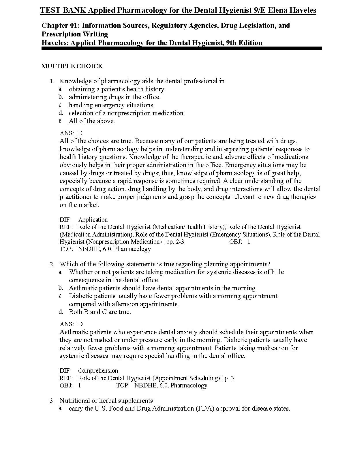 Test Bank for Applied Pharmacology for the Dental Hygienist, 9th Edition by Elena Haveles and Gretchen B. Gibson