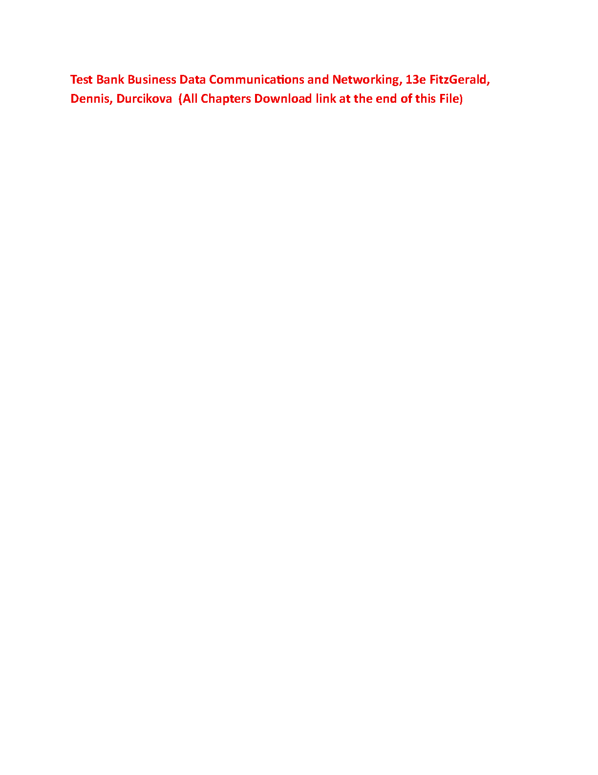 Test Bank for Business Data Communications and Networking, 13th Edition by Jerry FitzGerald, Alan Dennis, and Alexandra Durcikova