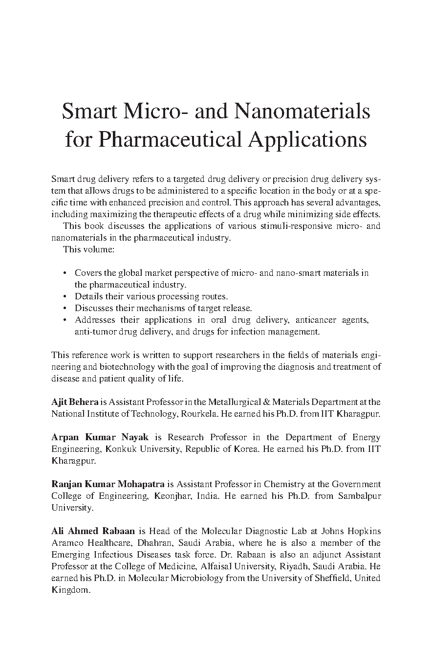Smart Micro- and Nanomaterials for Pharmaceutical Applications, 1st Edition by Ajit Behera, Arpan Kumar Nayak, Ranjan Kumar Mohapatra, and Ali Ahmed Rabaan | Updated 2025/2026 Exam Success Guide