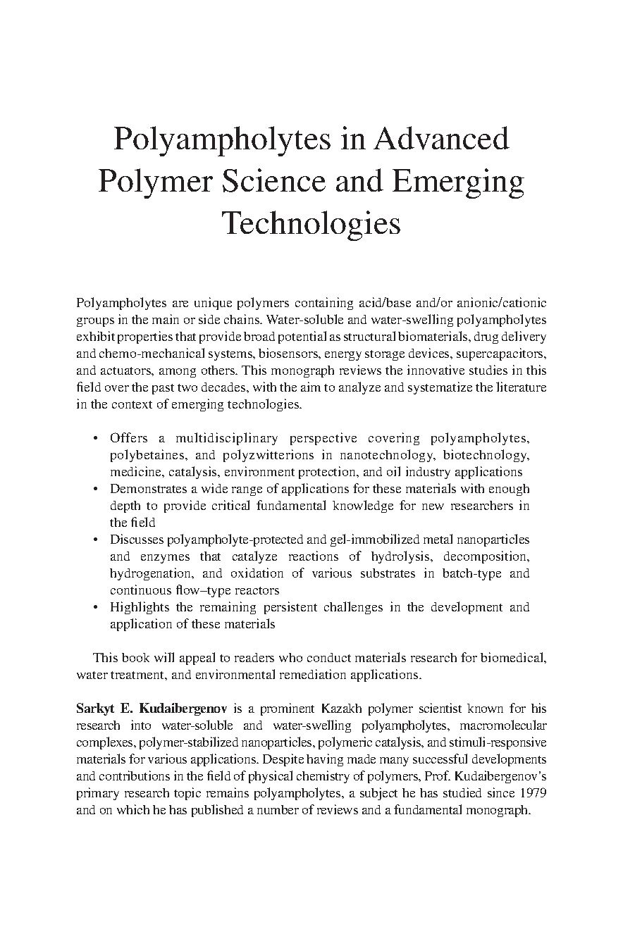 Polyampholytes in Advanced Polymer Science and Emerging Technologies (1st Edition) by Sarkyt E. Kudaibergenov - Latest 2025/2026 Study Guide to Ace Your Exams