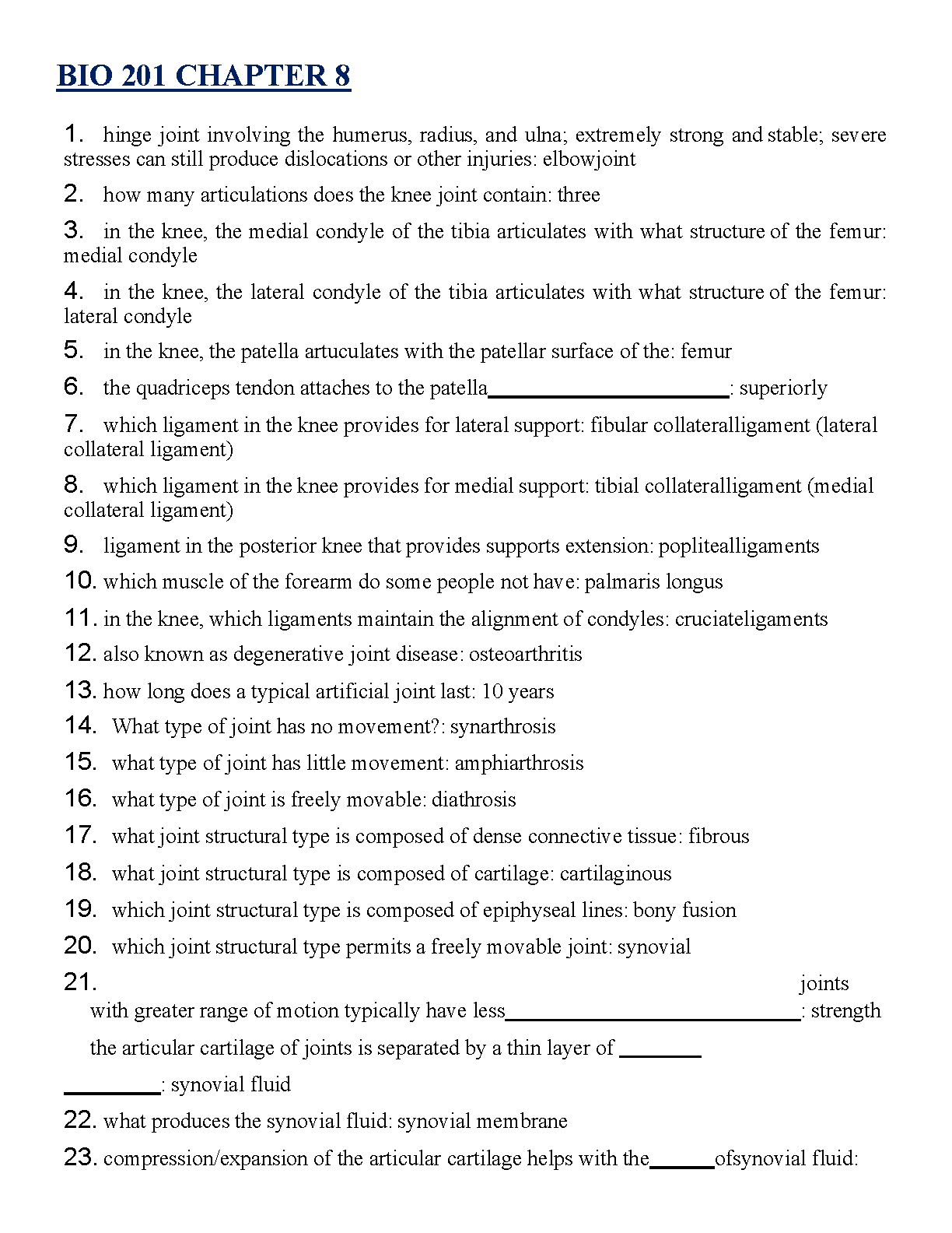 Human Anatomy & Physiology (BIO 201) Chapter 8 Test Bank - Verified Questions & Answers on Joints | 12th Edition, Elaine N. Marieb & Katja N. Hoehn