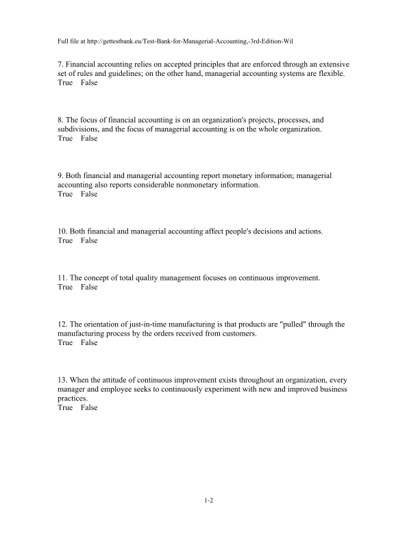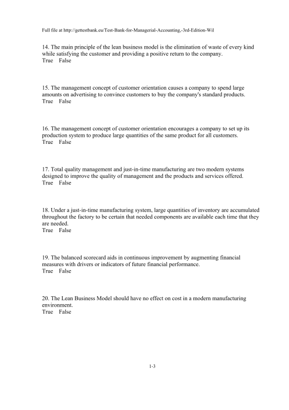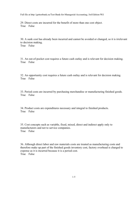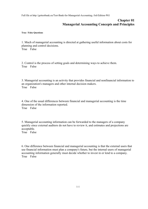 TEST BANK FOR Managerial Accounting Concepts and Principles 3RD EDITION BY WILD AND SHAW