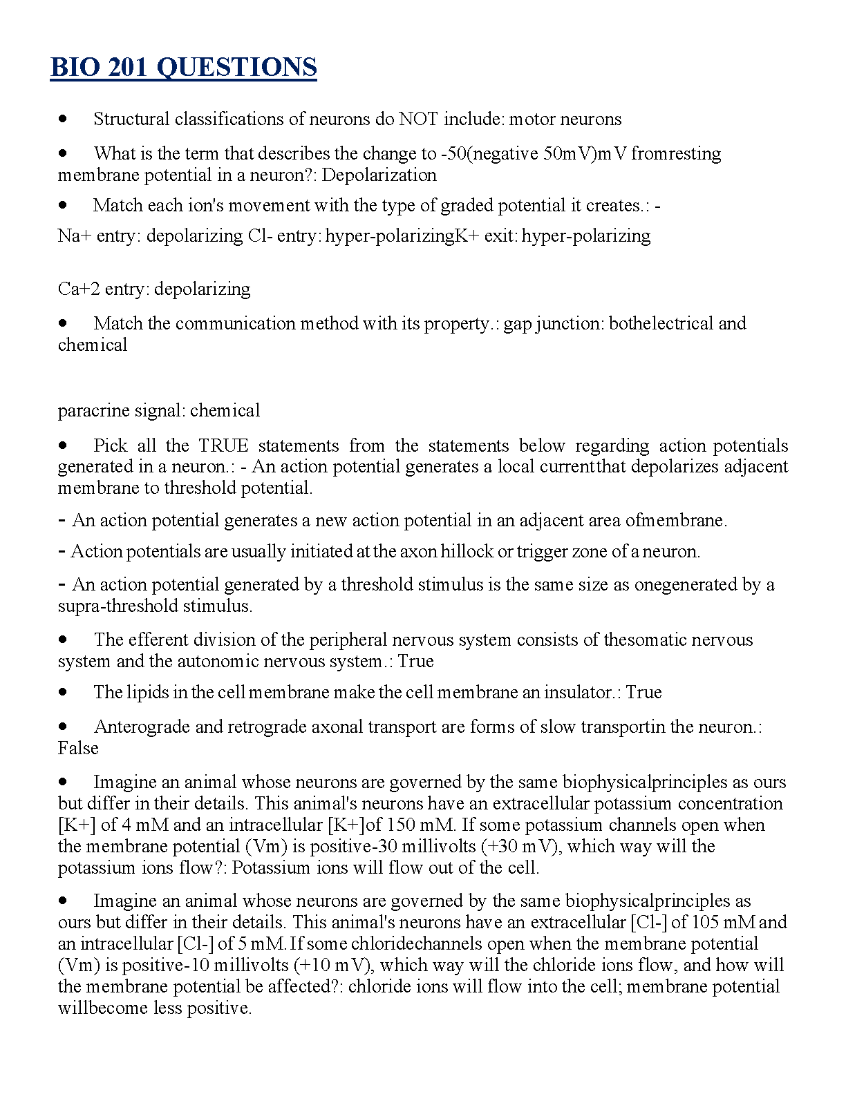 Master your BIO 201 course with this comprehensive test bank for 'Human Anatomy & Physiology,' 12th Edition by Marieb and Hoehn. This resource provides an extensive collection of exam-style questions and verified answers, covering crucial topics such as neuron classification, action potentials, membrane physiology, and the peripheral nervous system. Designed to mirror the content and difficulty of your actual exams, this test bank is the ultimate study tool to help you understand complex concepts, identify areas for improvement, and pass your course with confidence. Get instant access to the materials you need to succeed in BIO 201.