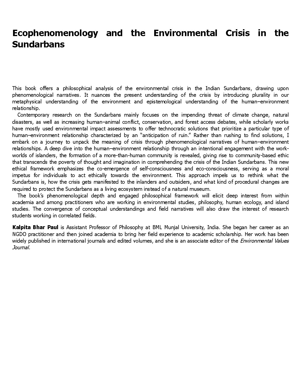 Ecophenomenology & The Sundarbans Environmental Crisis, 1st Edition by Kalpita Bhar Paul | The Ultimate 2025/2026 Guide to Pass Your Environmental Studies Exams First Try