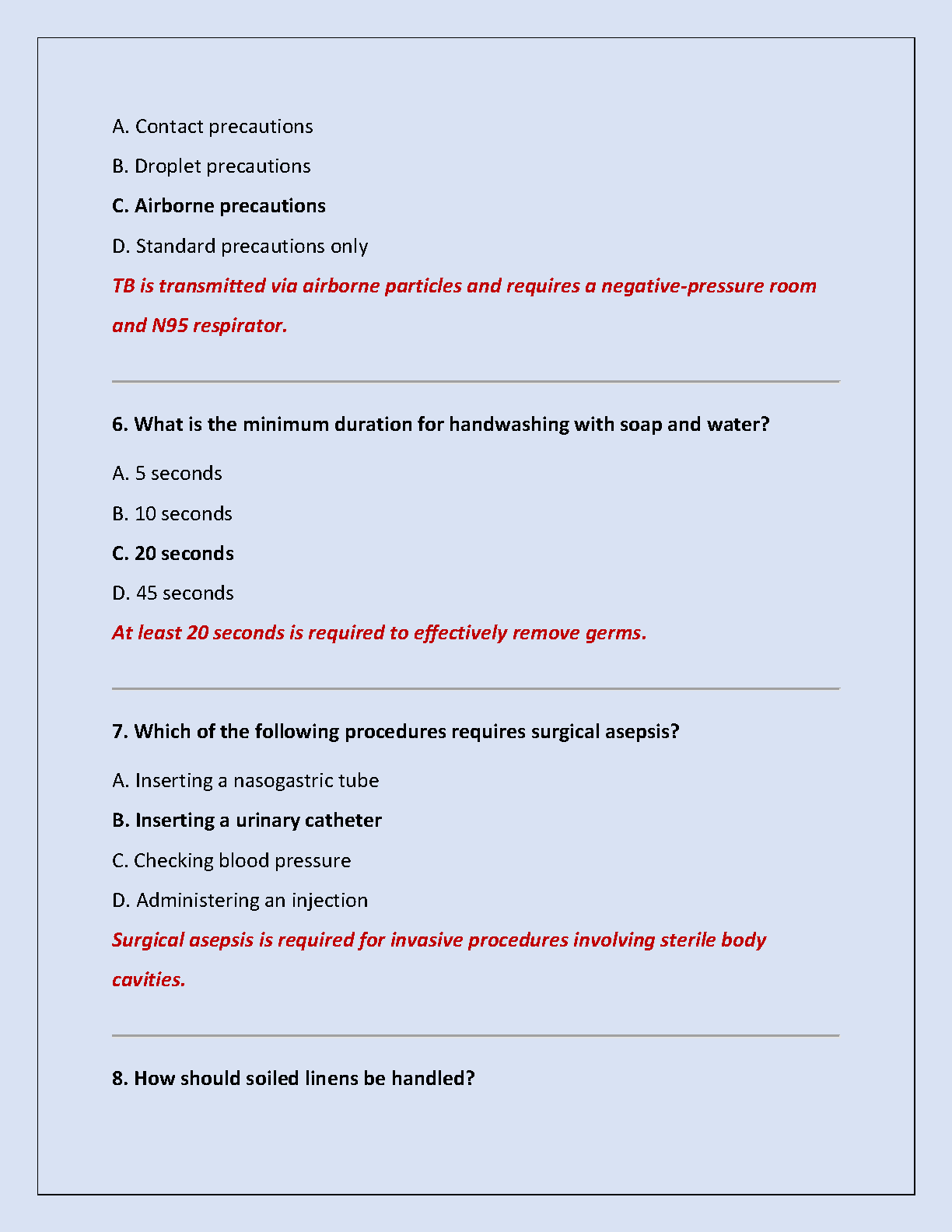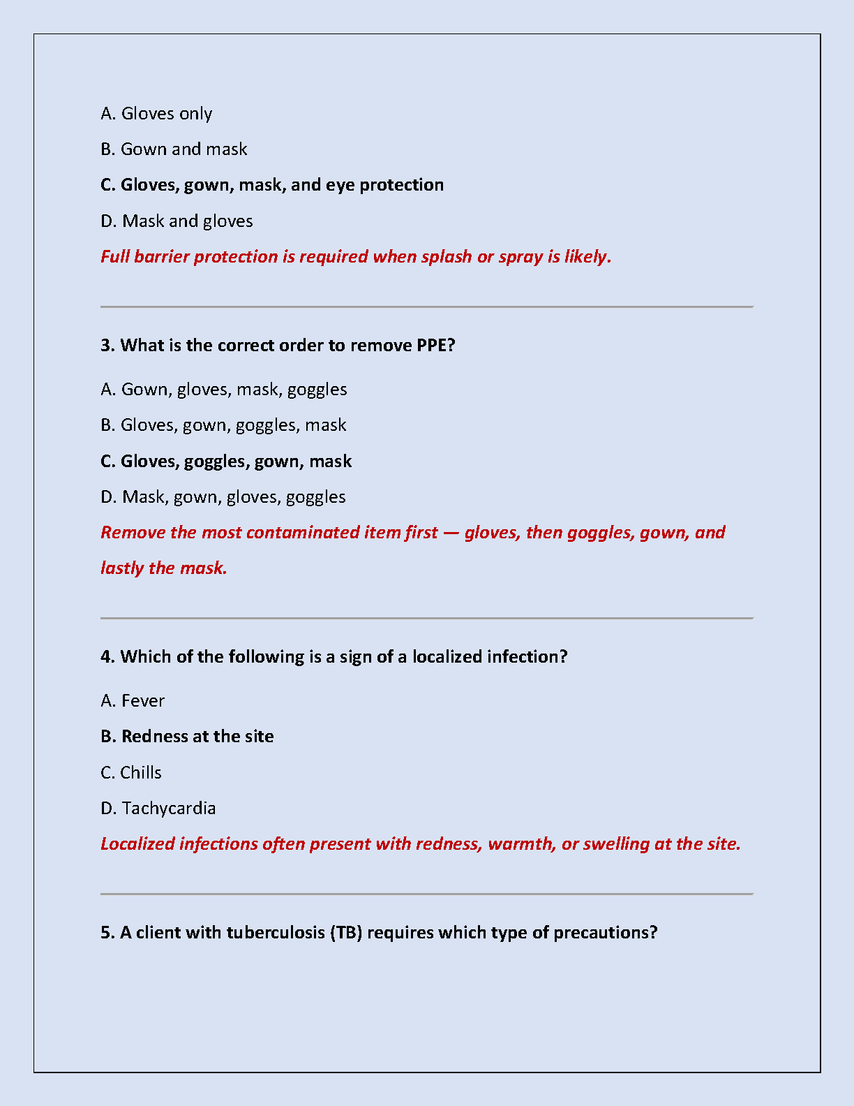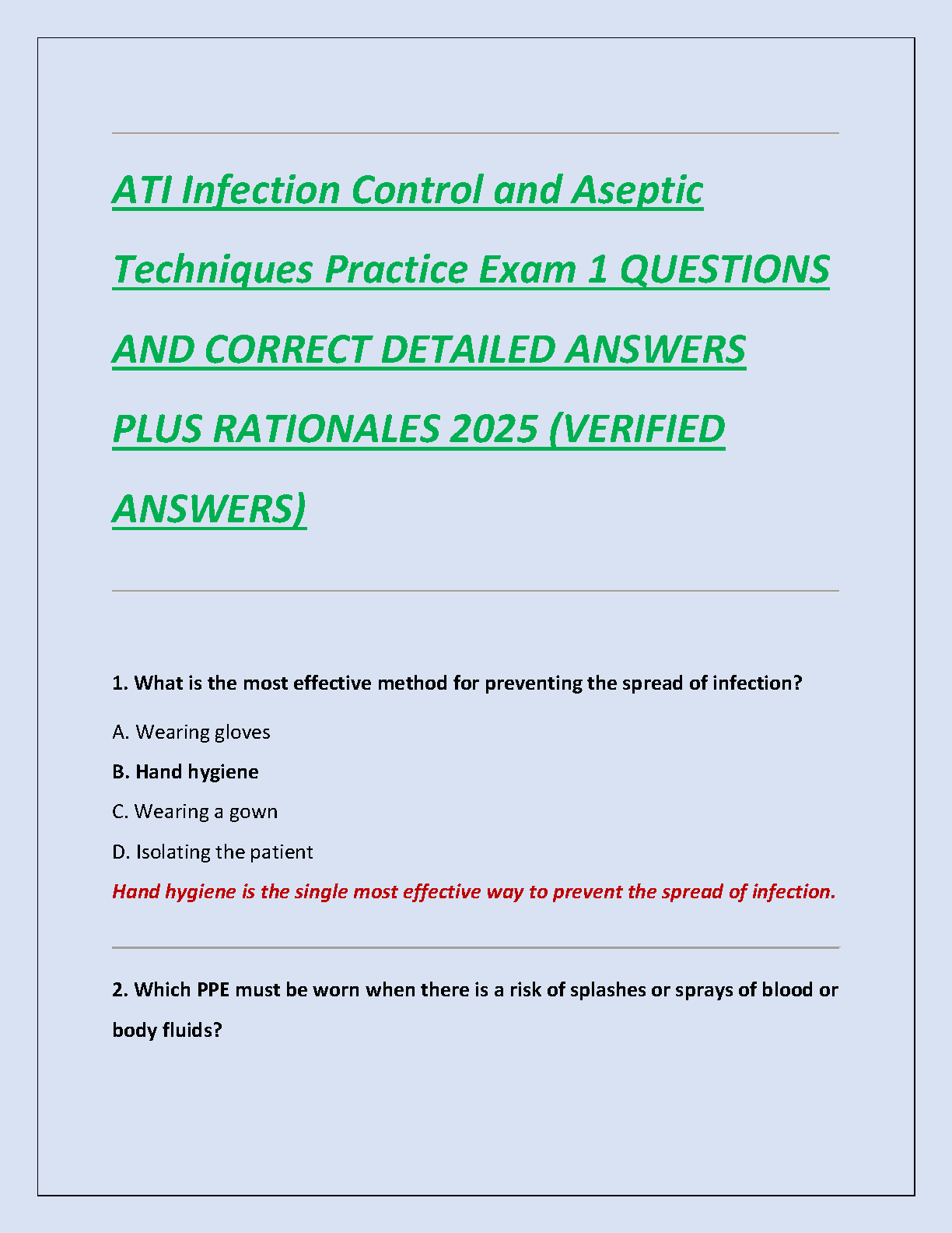 Master the essentials of infection control and aseptic techniques with our comprehensive practice exam for ATI. This 2025 guide features a complete set of verified questions, correct answers, and detailed rationales for each topic. Designed to mirror the actual exam format, this resource is your key to understanding critical concepts, boosting your confidence, and achieving a top score on your ATI assessment. Prepare effectively and ensure you have the knowledge needed for safe clinical practice.