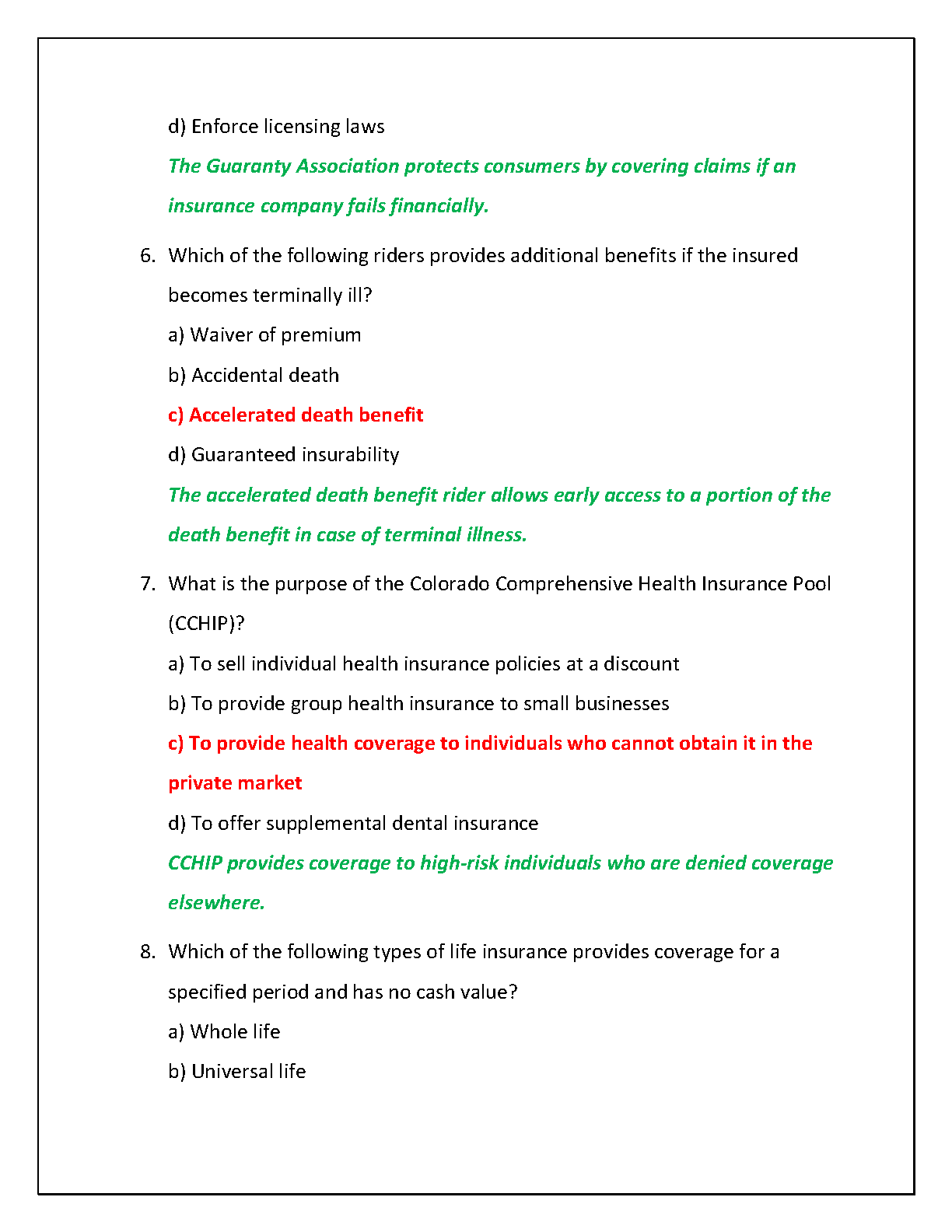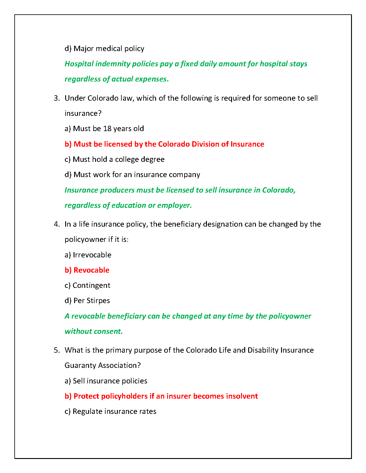 Colorado Life and Health Insurance Exam Test Bank 2025/2026: Comprehensive Q&A with Rationales to Pass on Your First Attempt