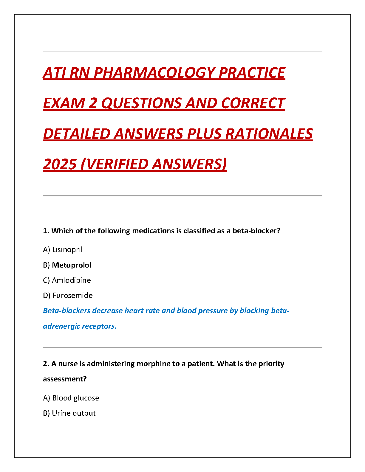 ATI RN Pharmacology Exam 2 Test Bank 2025: Verified Questions & Detailed Rationales for First-Attempt Success
