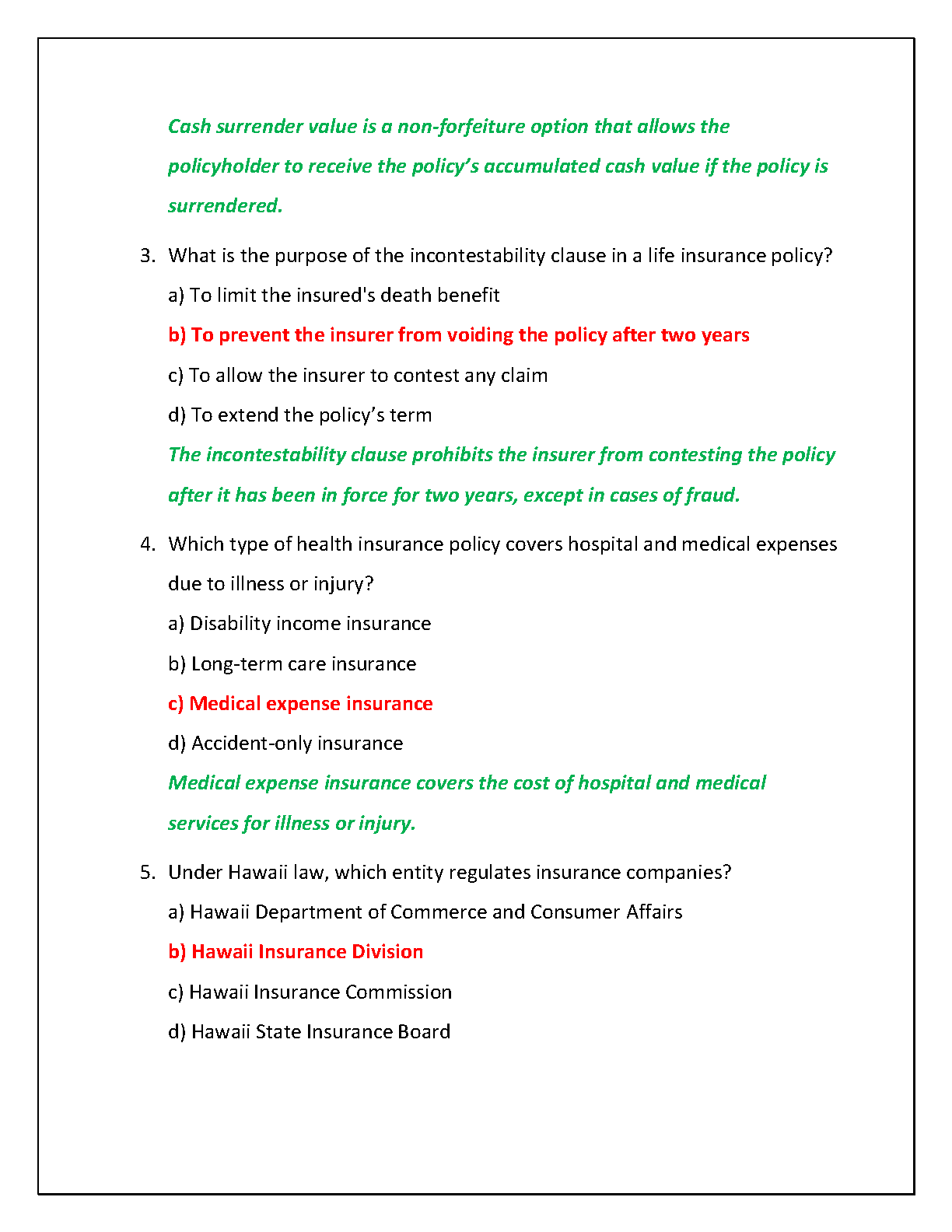 Ace your Hawaii Life and Health Insurance certification exam with our comprehensive 2025 test bank. This essential study guide provides a vast collection of exam-style questions, complete with verified correct answers and detailed rationales for each. By mastering the concepts and practicing with these materials, you'll be fully prepared to tackle the official test with confidence. This resource is expertly designed to help you pass on your first attempt, saving you time and avoiding resits. Get the ultimate preparation tool for the 2025 Hawaii Life and Health Insurance license exam today!