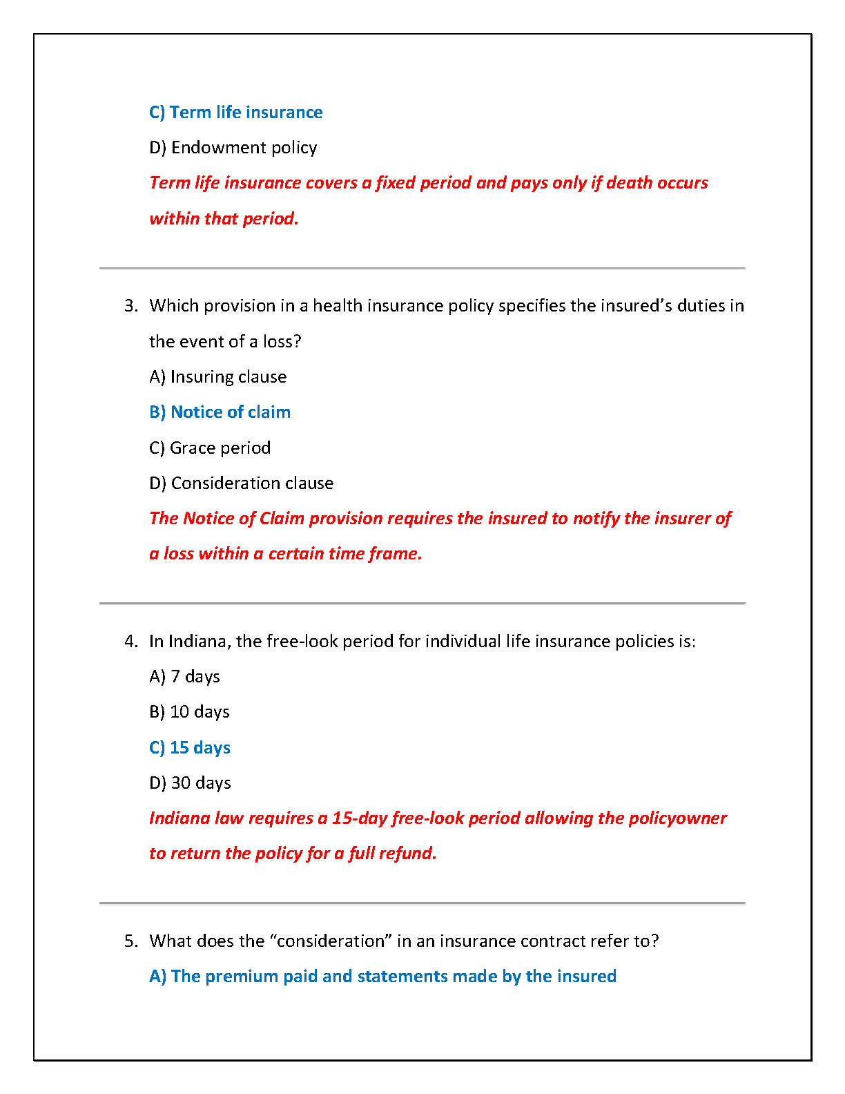 Ace your Indiana Life and Health Insurance licensing exam with our latest 2025 test bank! This comprehensive study guide is meticulously designed to help you pass on your first attempt and avoid costly resits. It features a complete collection of exam-style questions, each accompanied by a verified correct answer and a detailed rationale. The explanations break down complex concepts, ensuring you not only memorize the answers but truly understand the material. Prepare effectively, boost your confidence, and get ready to launch your career in the insurance industry.
