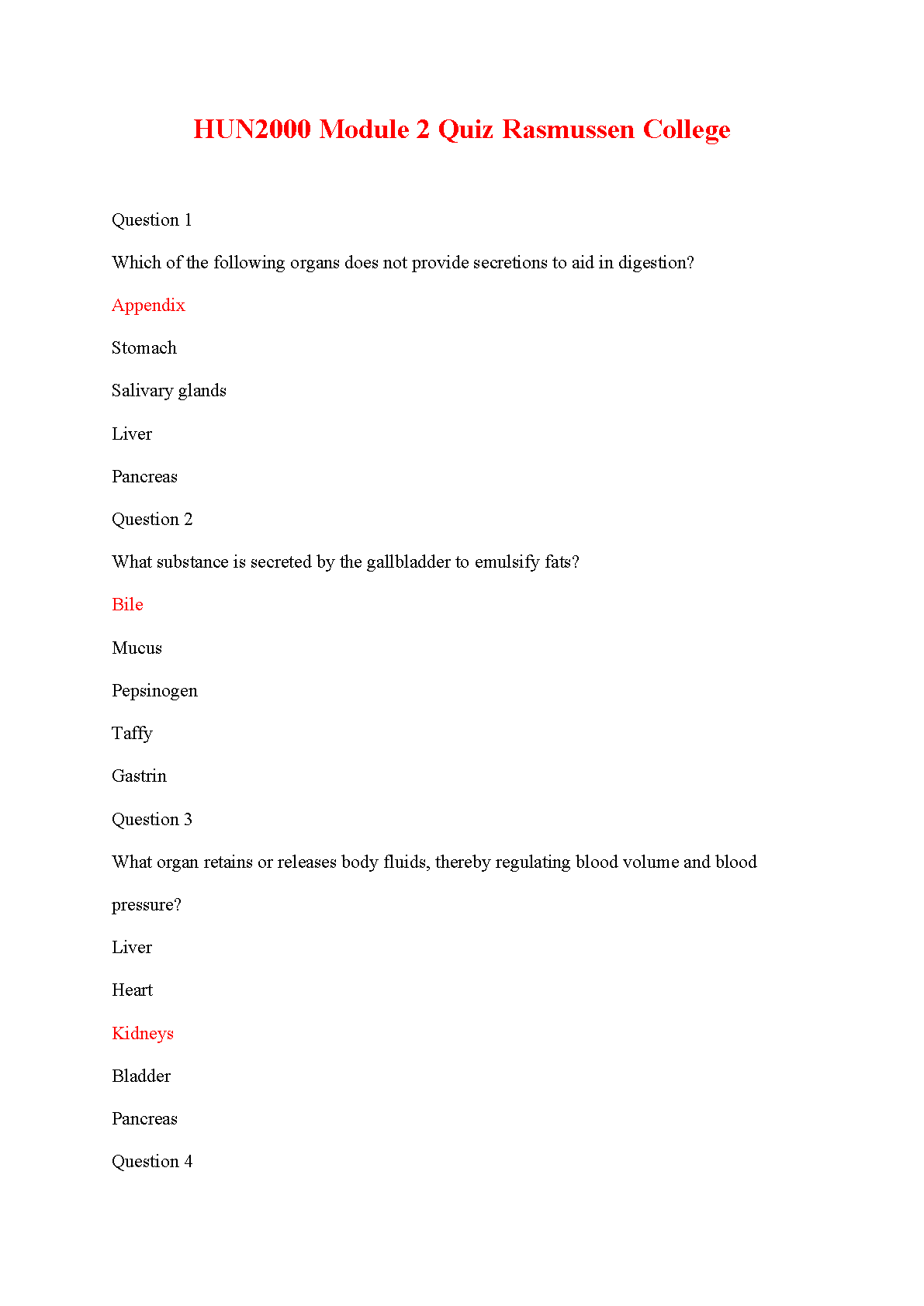 HUN2000 Module 2 Test Bank: Verified Quiz Questions and Answers for Rasmussen College