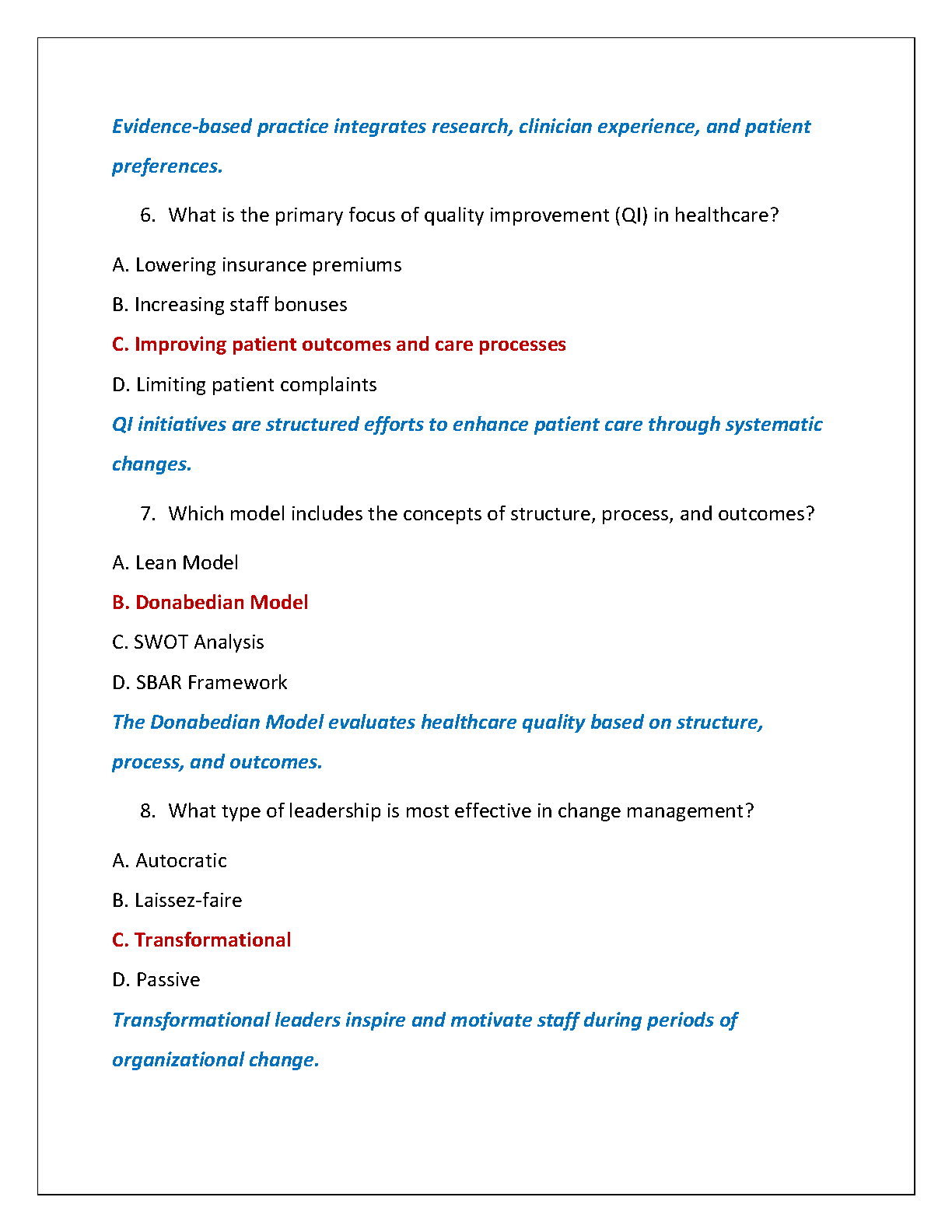 WGU C489 Organizational Systems and Quality Leadership Final Exam Test Bank 2025/2026 | Verified Questions with Detailed Rationales