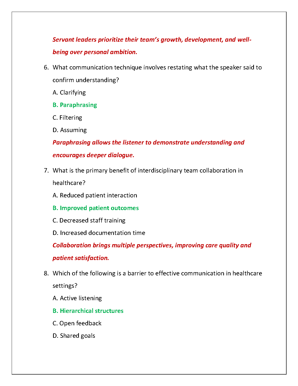 Ace your WGU C820 final exam with this complete test bank for Professional Leadership and Communication in Healthcare. This verified resource provides an extensive collection of exam-style questions, each accompanied by a correct, detailed answer and a thorough rationale. Master complex topics, reinforce your learning, and walk into your final exam with confidence. This study guide is expertly designed to help you understand the core concepts and pass your exam on the first try. Get the edge you need for success in WGU C820.