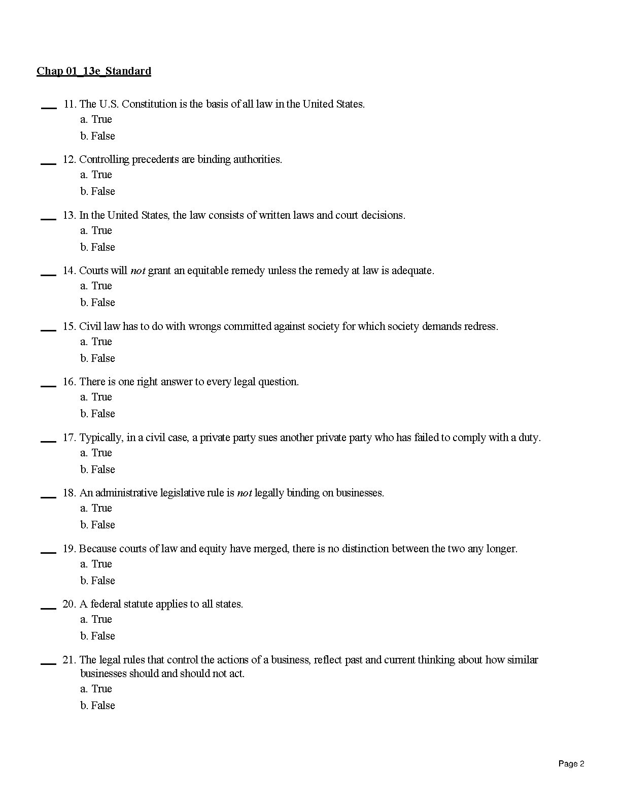 Test Bank for Business Law Today, Standard Edition, 13th Edition by Roger LeRoy Miller & Gaylord A. Jentz