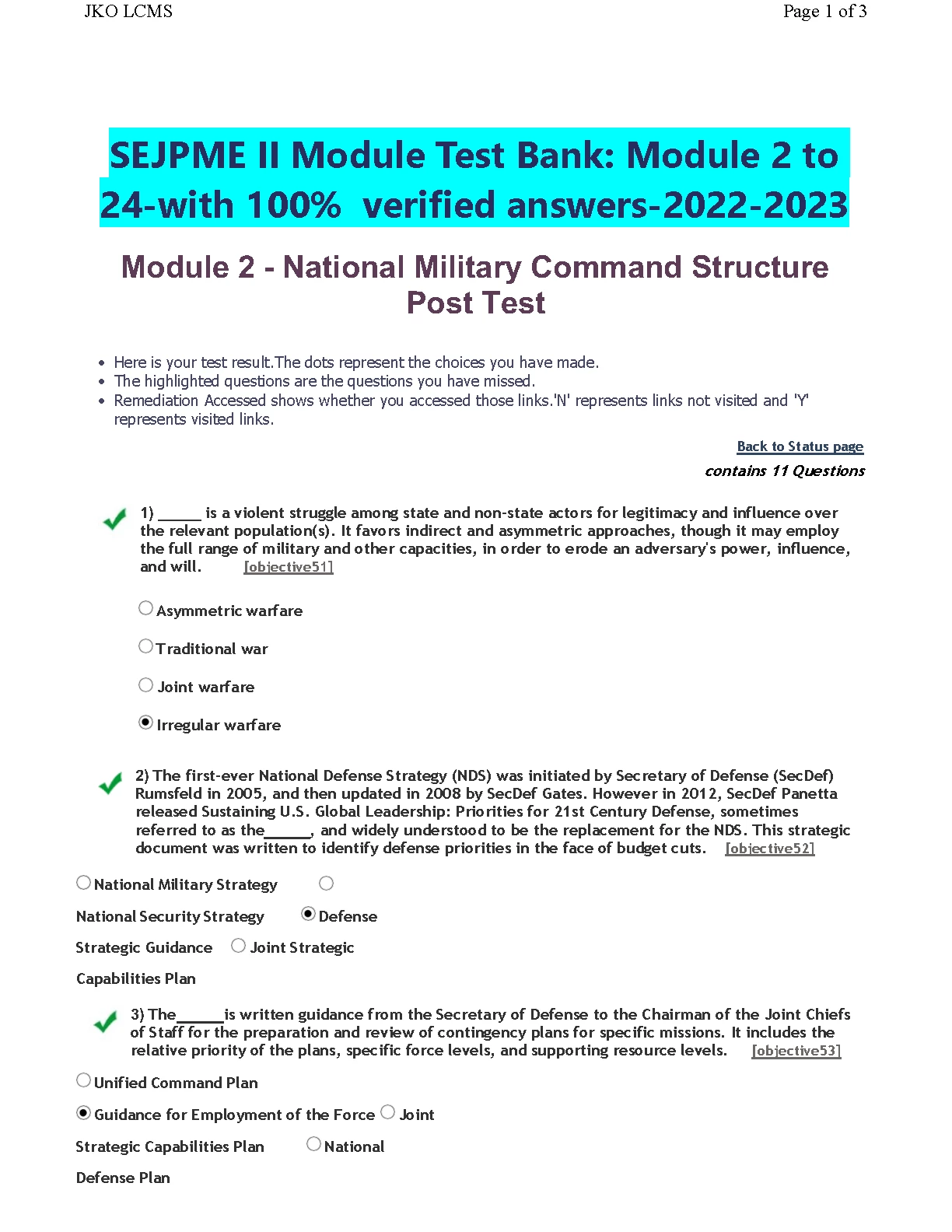 TEST BANK FOR SEJPME II Module. Module 2 to 24. LATEST UPDATED VERSION 2023/2024