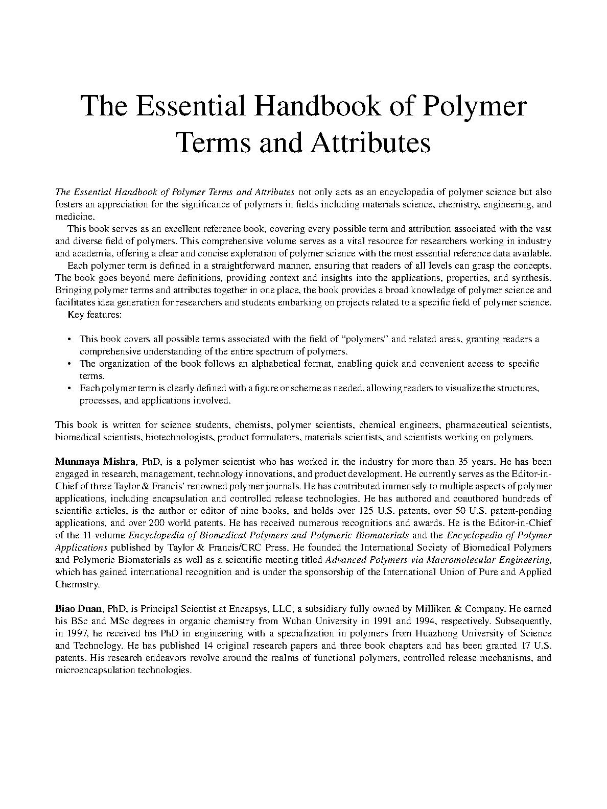 Struggling with complex polymer terminology? Unlock your full potential with 'The Essential Handbook of Polymer Terms and Attributes' by Munmaya K. Mishra and Biao Duan. This comprehensive, A-Z guide is your ultimate resource for the 2025/2026 academic year, designed to clarify every concept and attribute you'll encounter. Move beyond simple memorization and gain a deep understanding of polymer science. This handbook is the key to mastering your coursework and passing your exams with confidence on the very first try. Say goodbye to confusion and the stress of resits—get the definitive guide today!