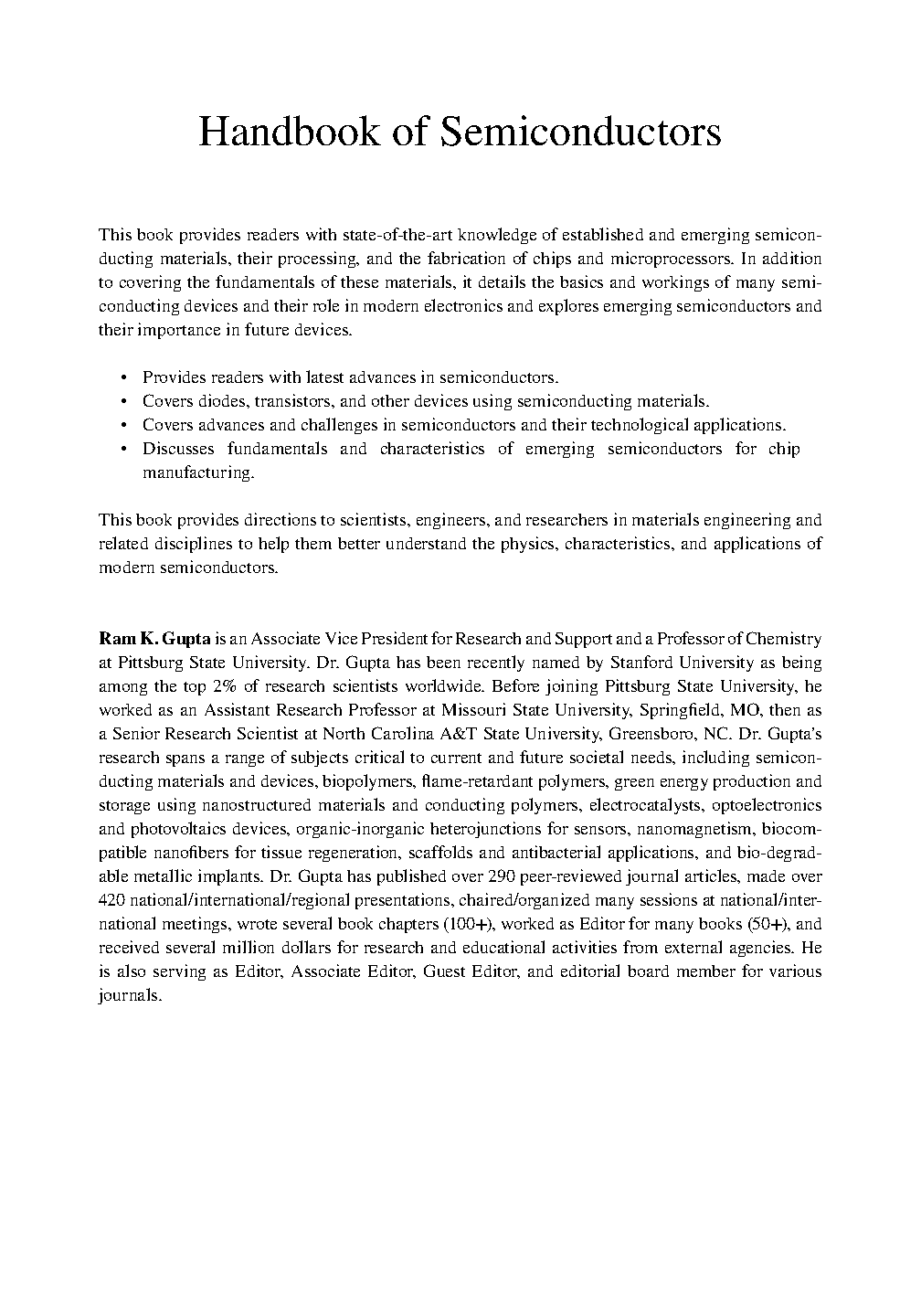 Unlock a deep understanding of semiconductor technology with the latest 2025/2026 edition of the 'Handbook of Semiconductors: Fundamentals to Emerging Applications.' Edited by the renowned Ram K. Gupta, this comprehensive guide is expertly designed to take you from core principles to the cutting edge of modern applications. This resource provides the critical knowledge needed to excel in your coursework and professional exams. Secure your success and pass on your first attempt with this essential, up-to-date handbook.