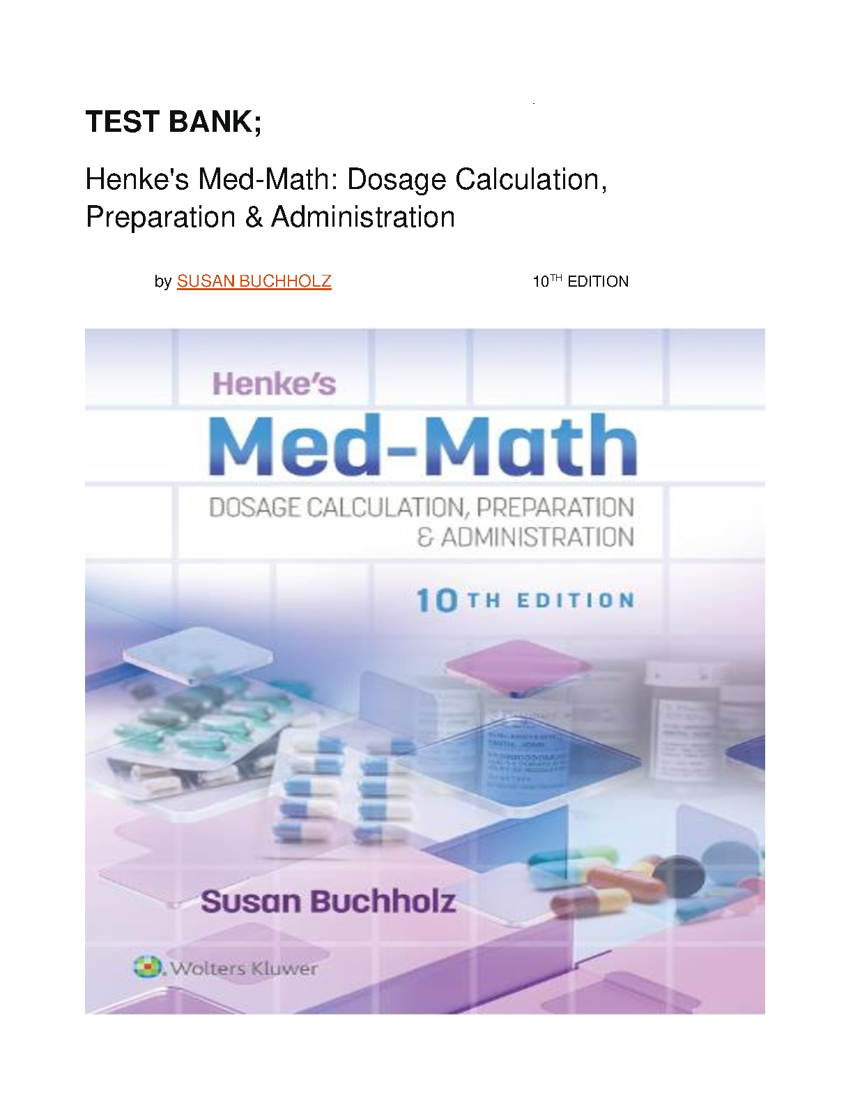 Master the critical skill of medication math with the official Test Bank for the 10th Edition of Henke's Med-Math by Susan Buchholz. This comprehensive resource provides a vast array of practice questions and detailed answers directly corresponding to the textbook chapters. It is expertly designed to help nursing and healthcare students build confidence, improve accuracy in dosage calculations, and excel in their exams. Download instantly to start preparing and ensure you pass your course with flying colors.