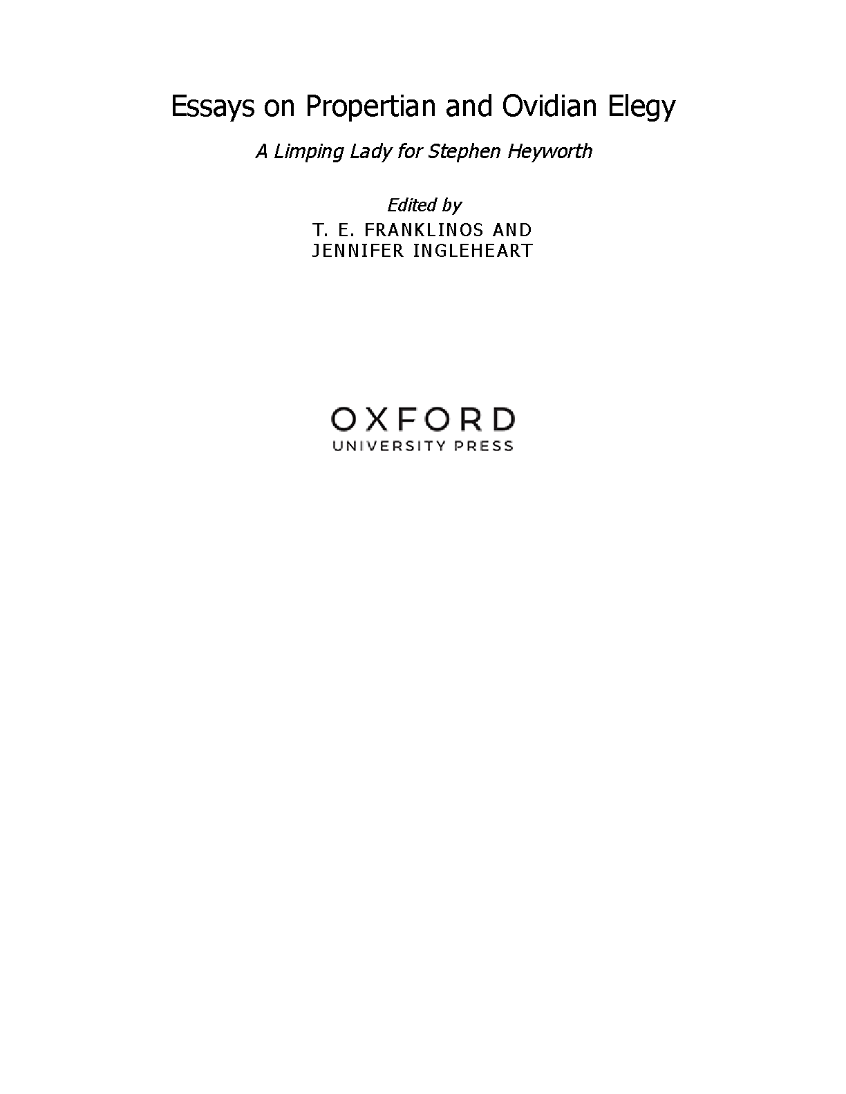 Comprehensive Study Guide for Essays on Propertian & Ovidian Elegy by T. E. Franklinos & Jennifer Ingleheart | 1st Ed. Notes for 2025/2026 Exam Success