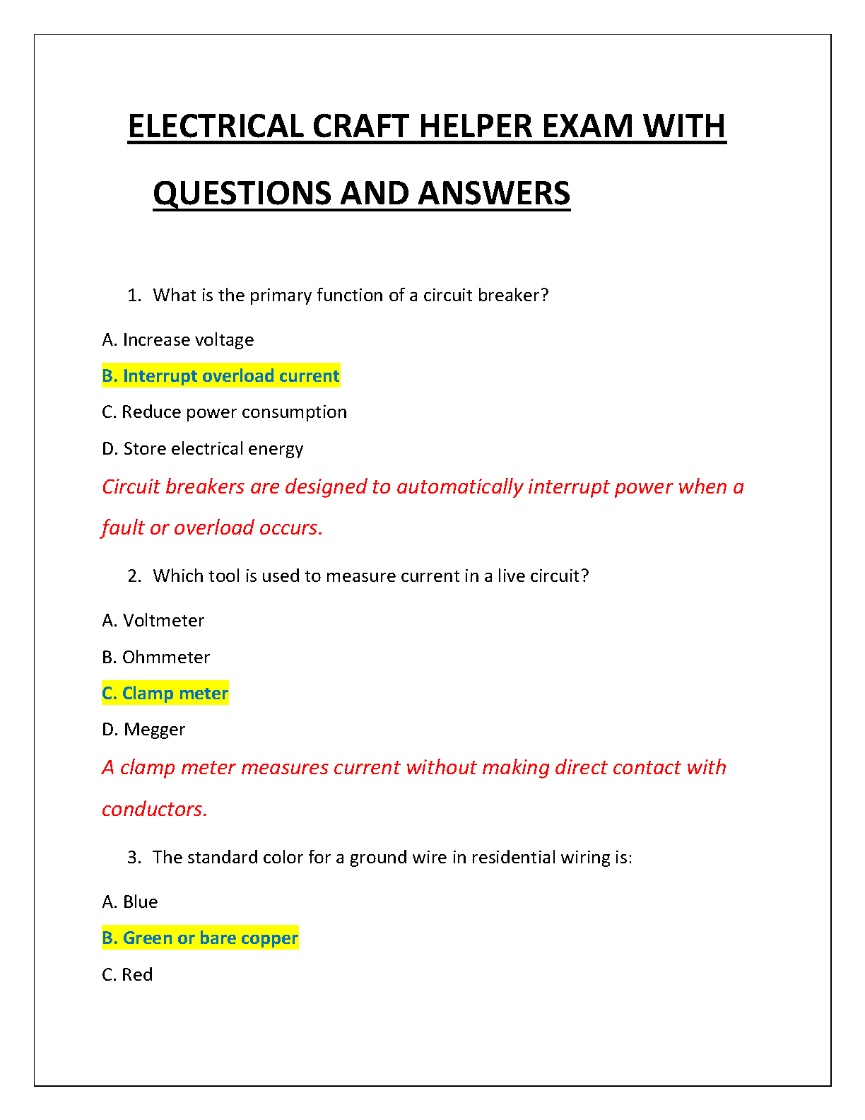 Electrical Craft Helper Exam Test Bank 2025/2026: Comprehensive Questions and Answers to Pass on Your First Try