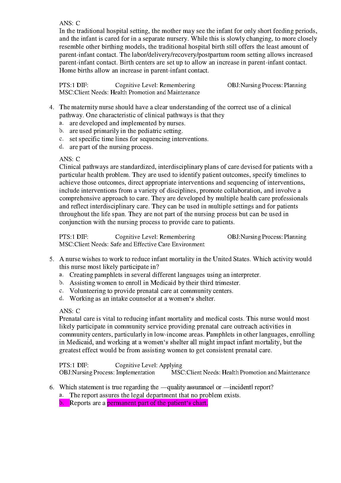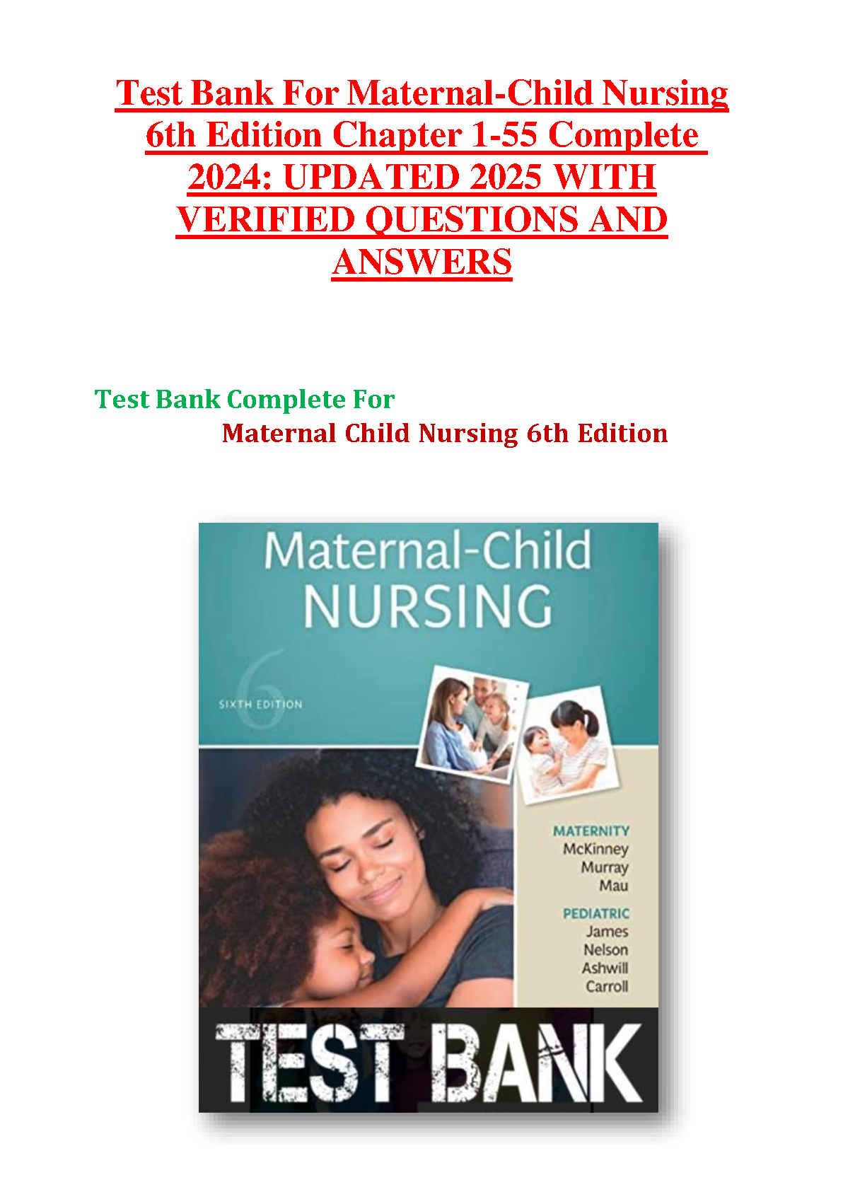 Test Bank for Maternal-Child Nursing, 6th Edition by McKinney, Murray, Mau, James, Nelson, Ashwill, and Carroll - Complete Chapters 1-55, Updated 2025