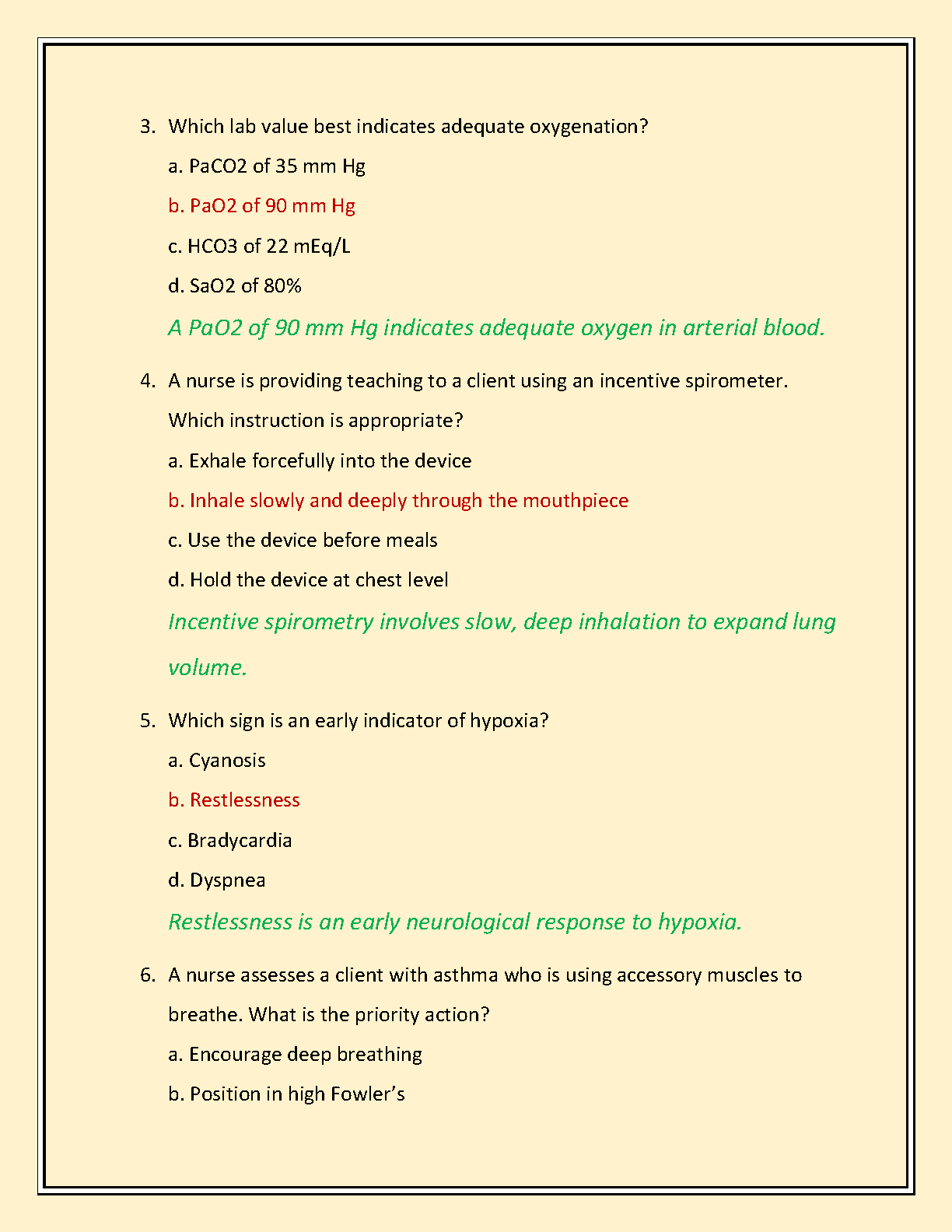 Master the ATI Gas Exchange and Oxygenation exam with our comprehensive test bank, fully updated for the 2025/2026 academic year. This essential study guide features a complete collection of practice questions paired with 100% correct, verified answers and detailed rationales. Focus on critical nursing concepts, including patient care for COPD and pneumonia, to ensure you pass your exam on the first try and avoid resits. Elevate your preparation and walk into your exam with confidence.