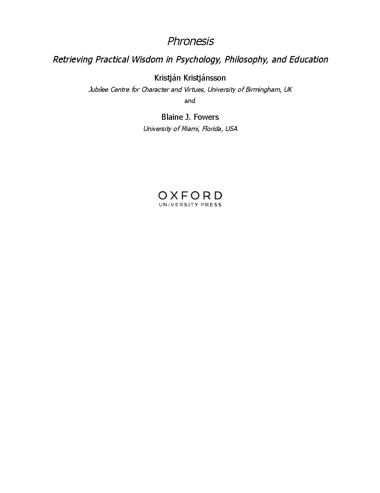 Phronesis: Practical Wisdom in Psychology, Philosophy, and Education, 1st Edition by Kristjánsson & Fowers | 2025/2026 Exam Success Guide
