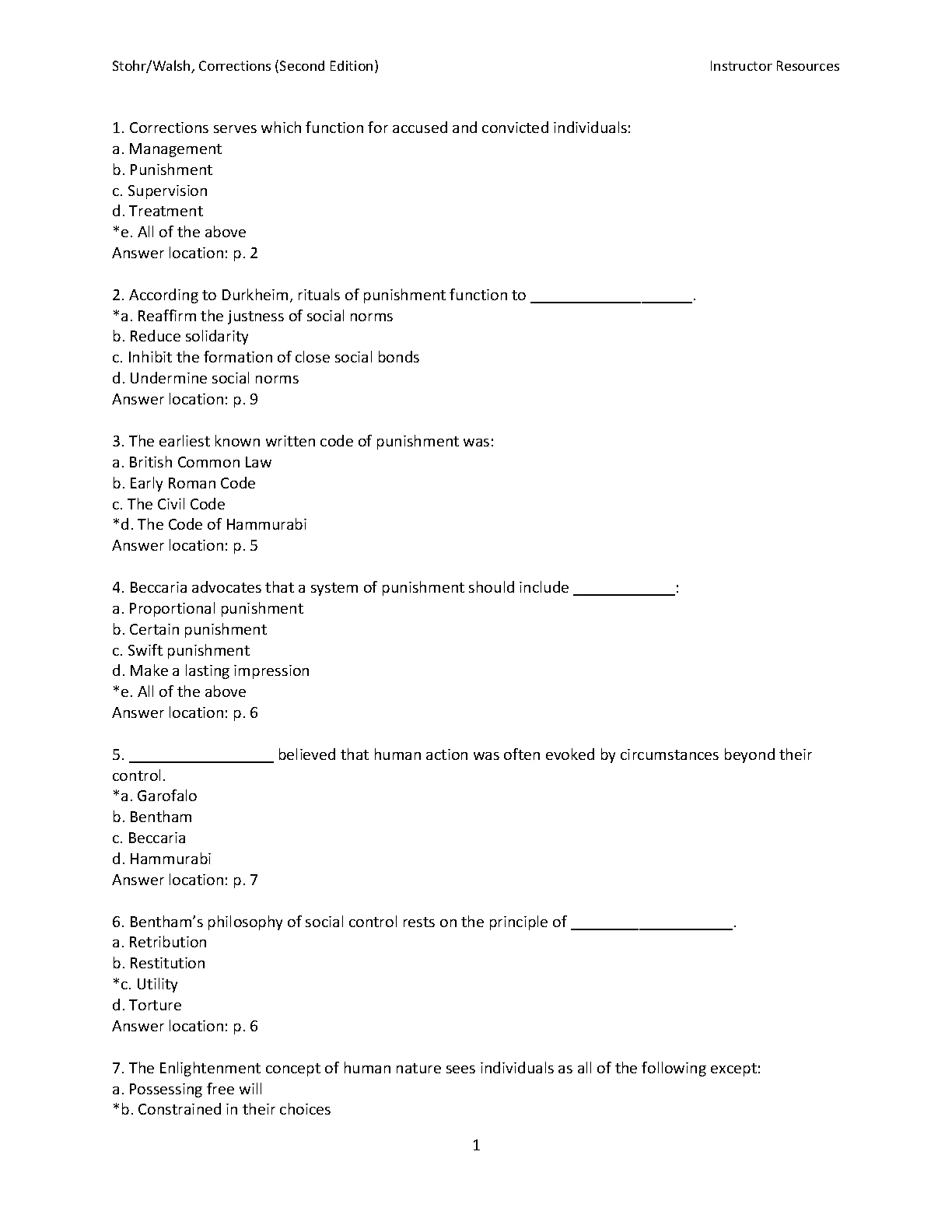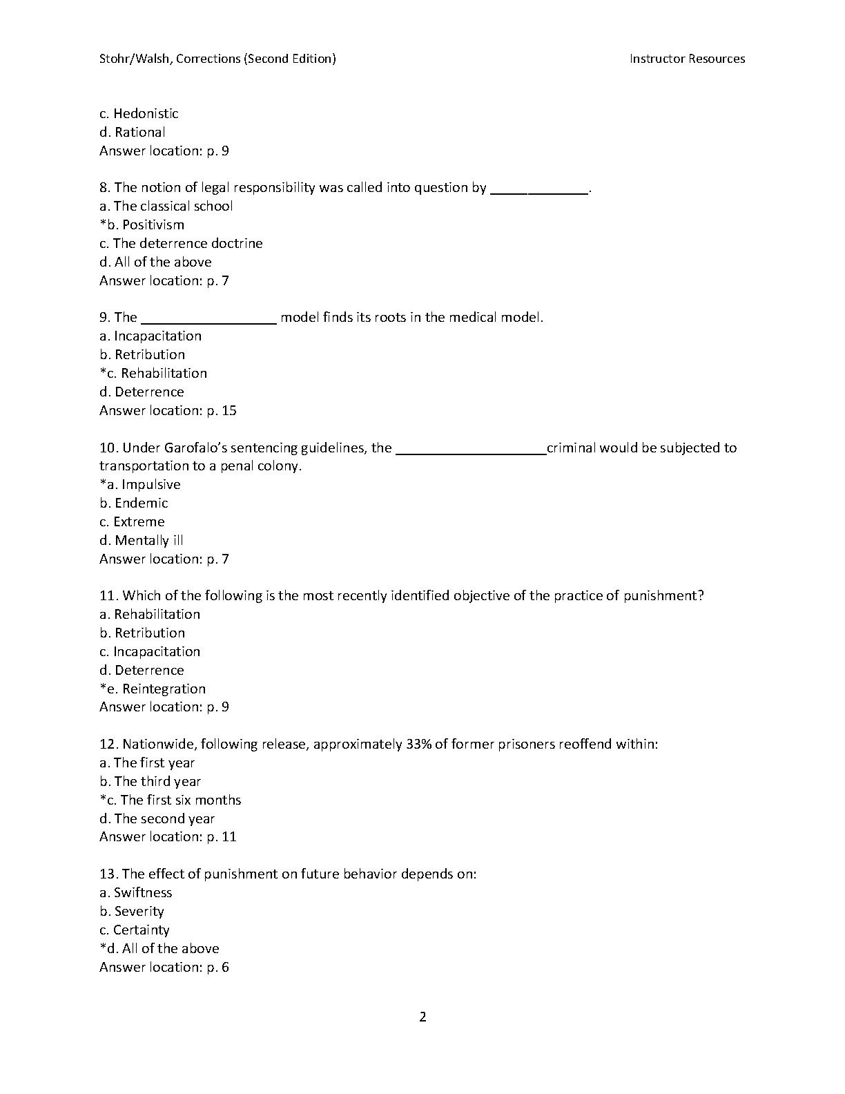 TEST BANK FOR Corrections Instructor Resources (Second Edition) BY Stohr/Walsh