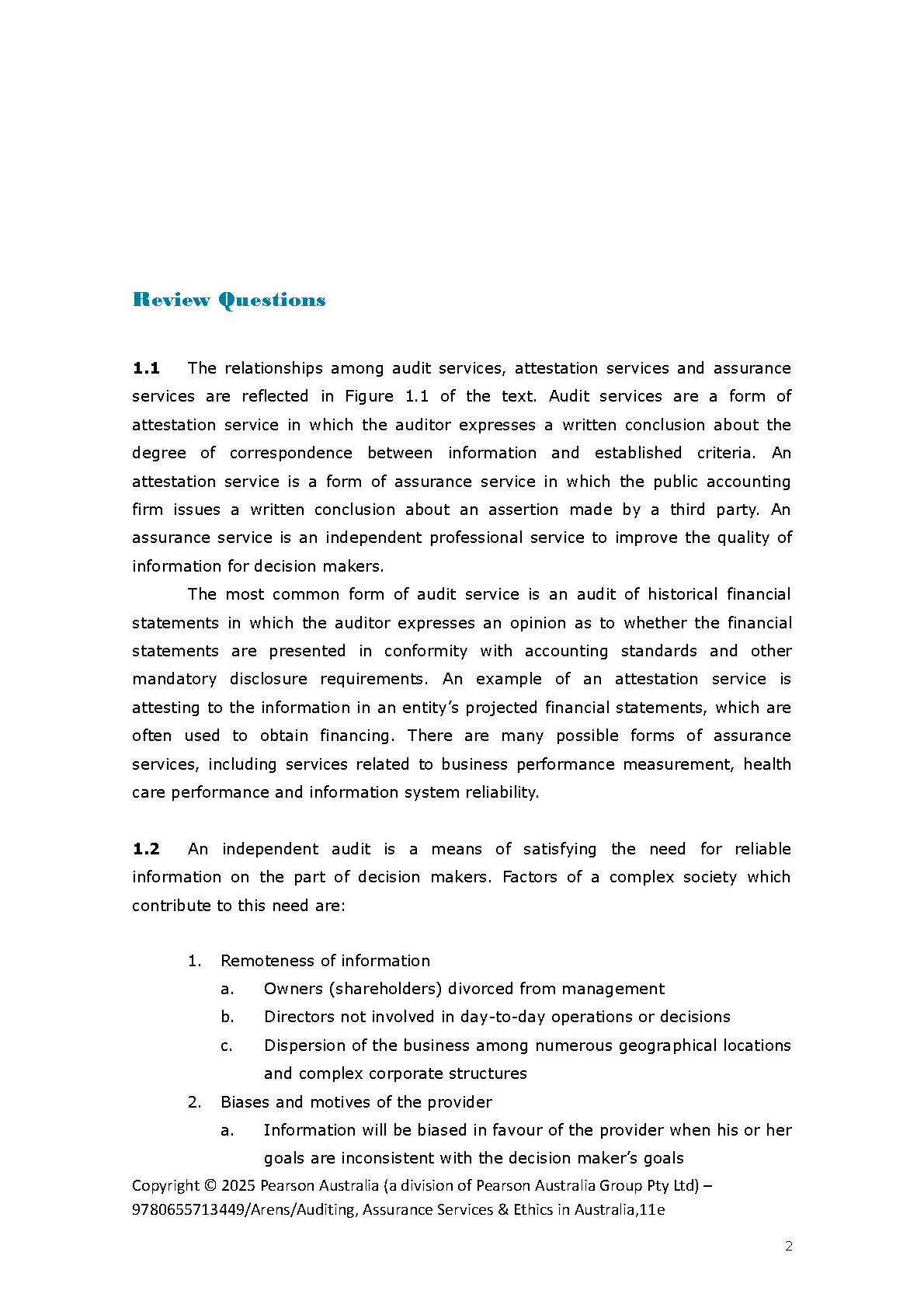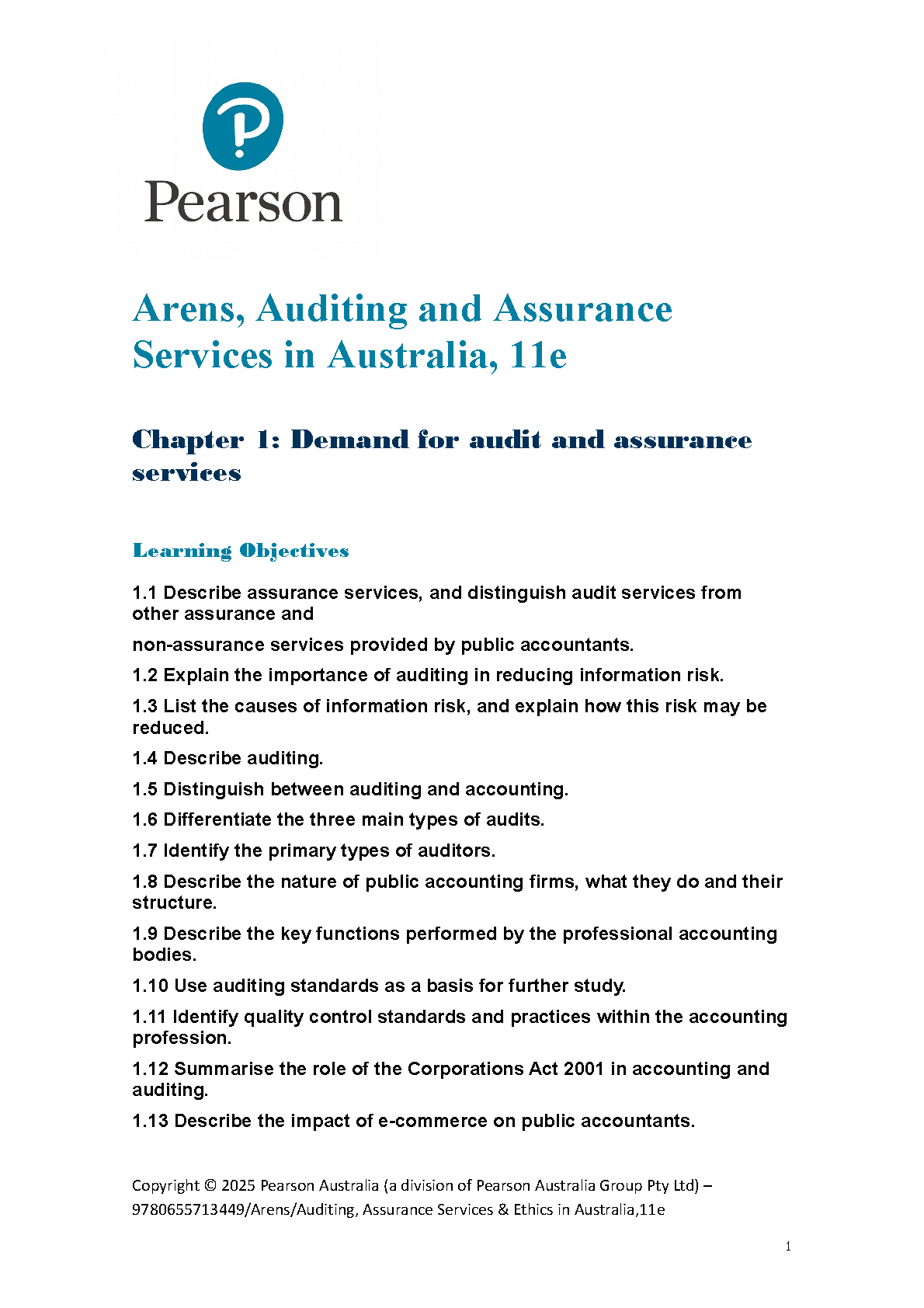 Test Bank for Auditing and Assurance Services in Australia, 11th Edition by Alvin A. Arens, Randal J. Elder, Mark S. Beasley, Peter Roebuck, and Robyn Moroney