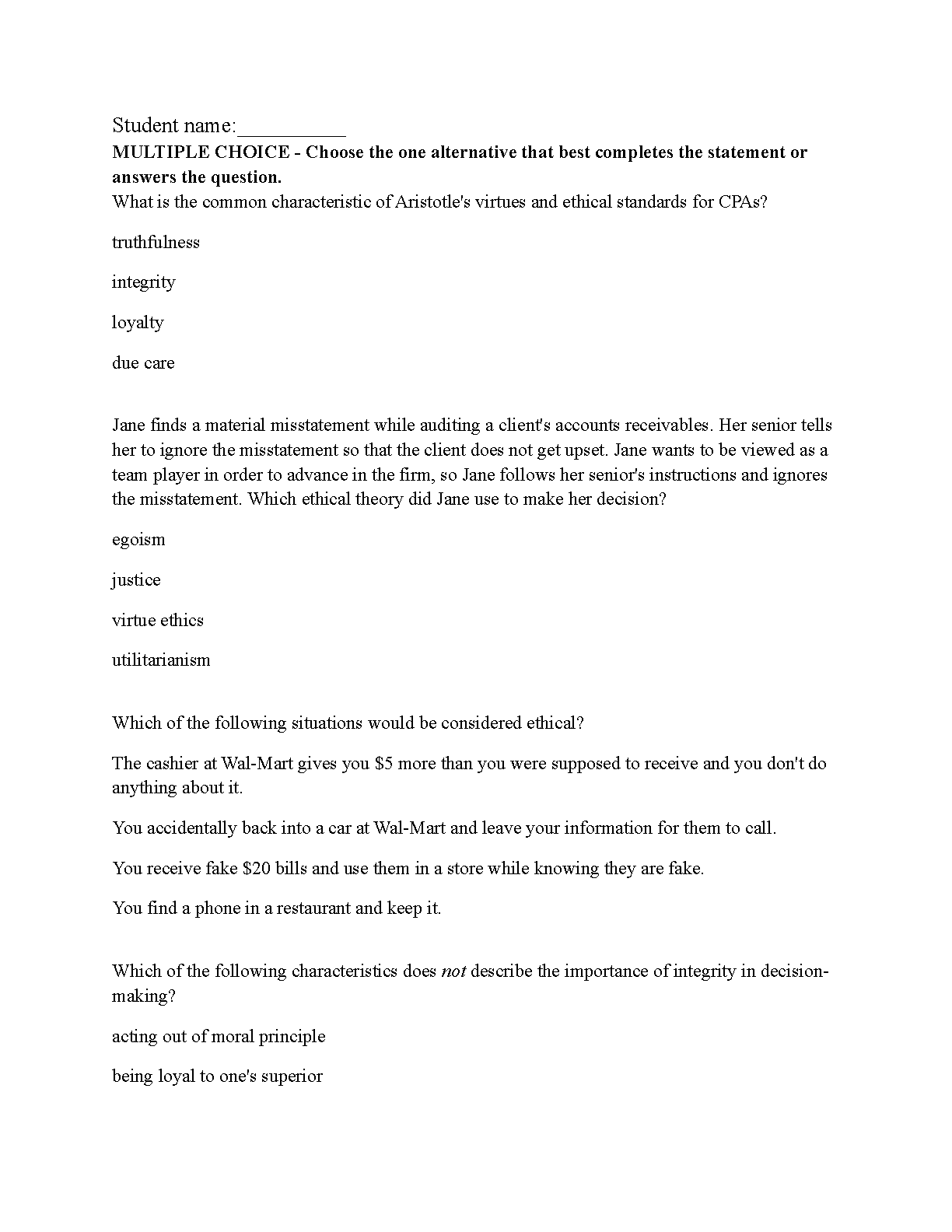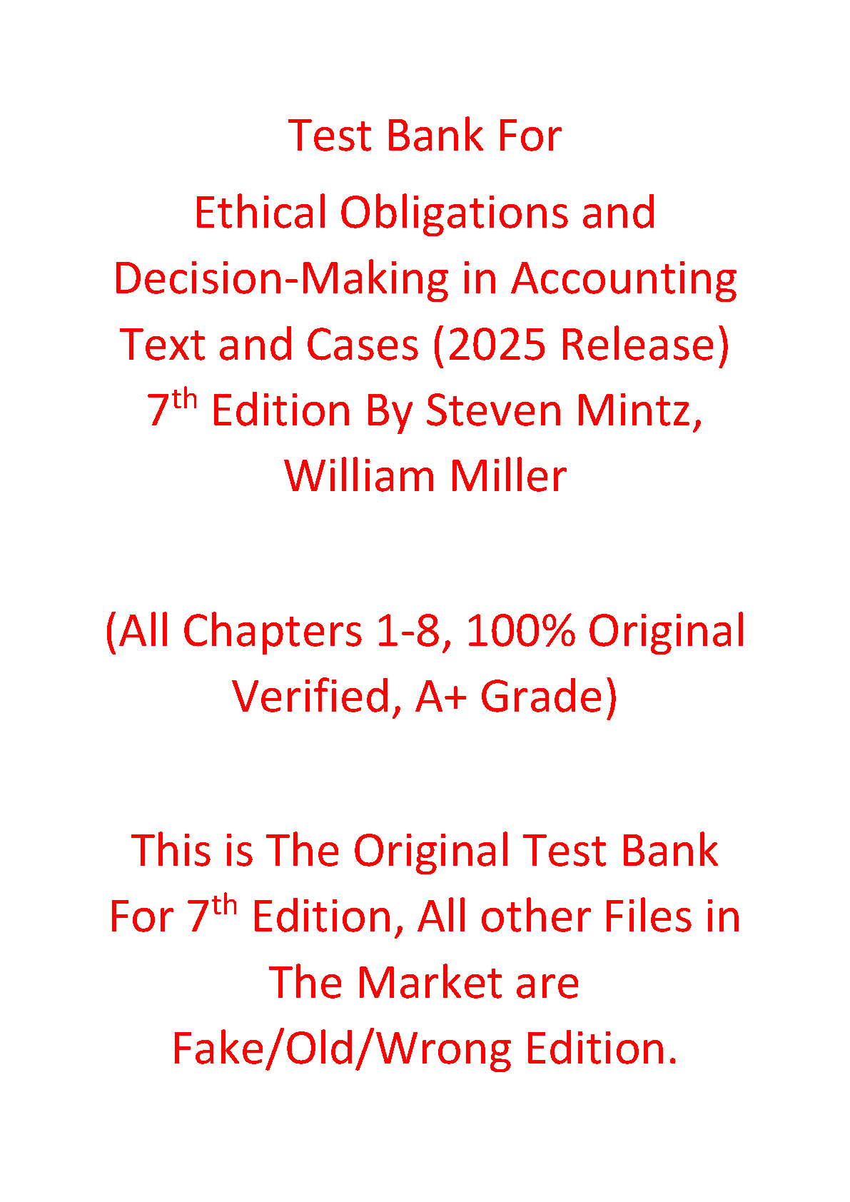 Test Bank for Ethical Obligations and Decision-Making in Accounting, 7th Edition by Steven M. Mintz & William F. Miller (Complete Chapters 1-8)