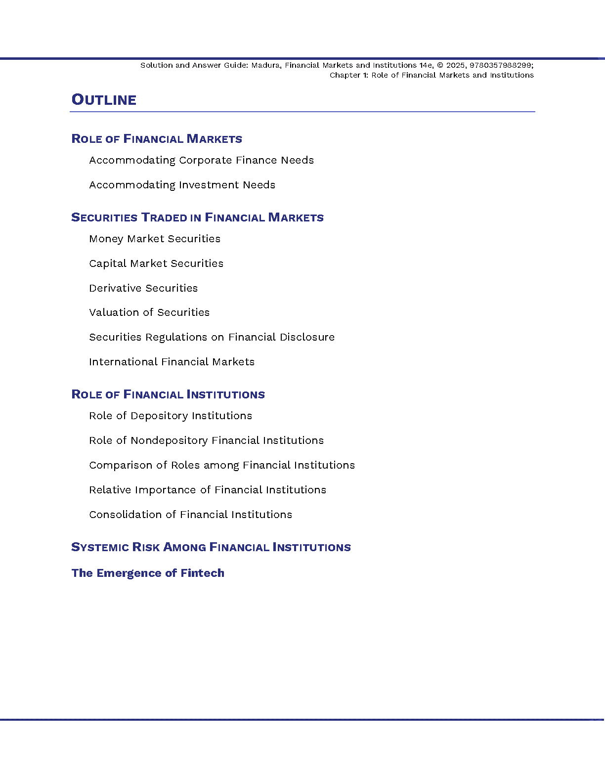Financial Markets & Institutions 14th Edition by Jeff Madura, Marcia Millon Cornett - Official Solutions Manual (All Chapters 1-27)