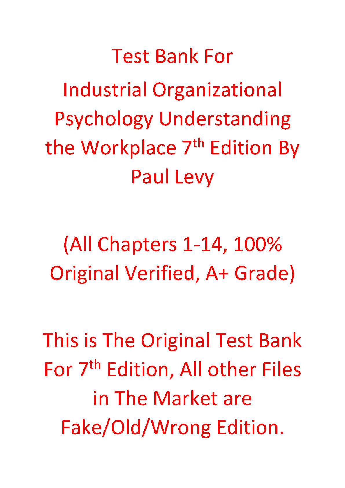 Official Test Bank for Industrial Organizational Psychology: Understanding the Workplace, 7th Edition by Paul E. Levy