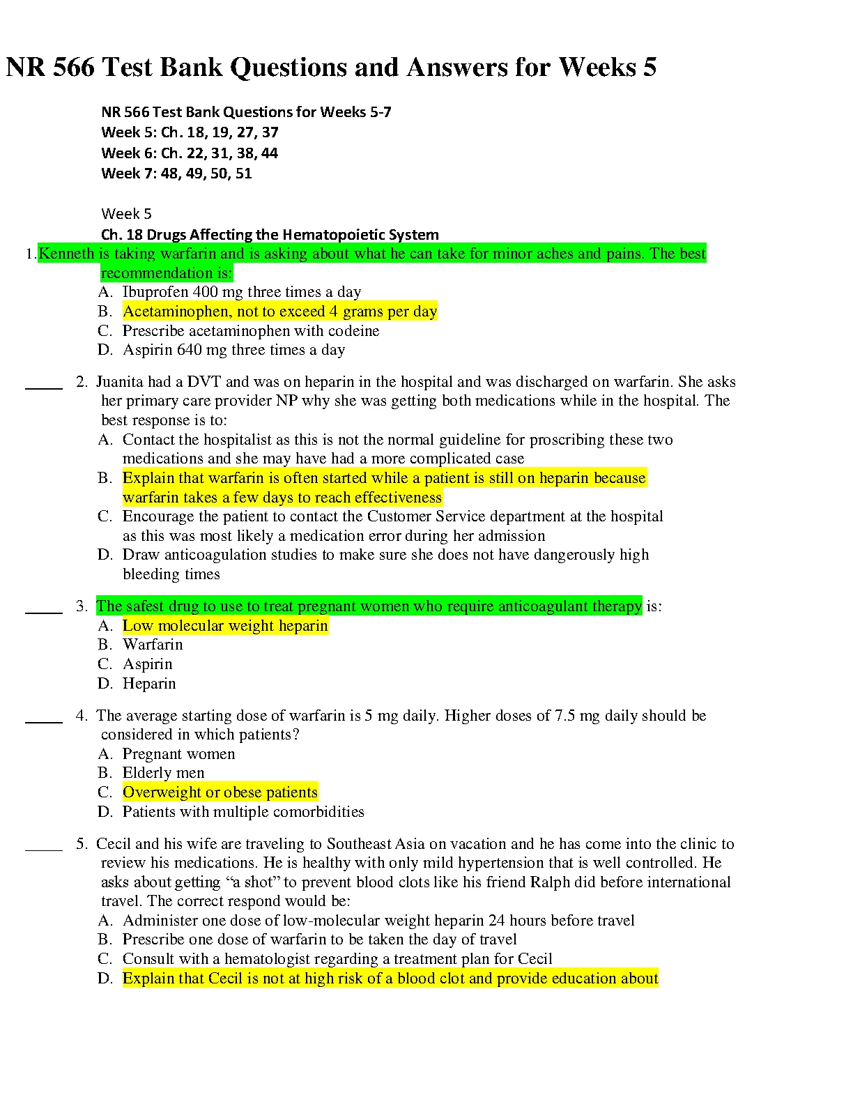 TEST BANK FOR NR 566 Questions and Answers for Weeks 5