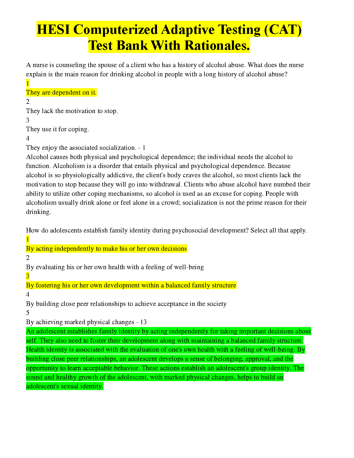 TEST BANK FOR HESI Computerized Adaptive Testing (CAT) With Rationales.