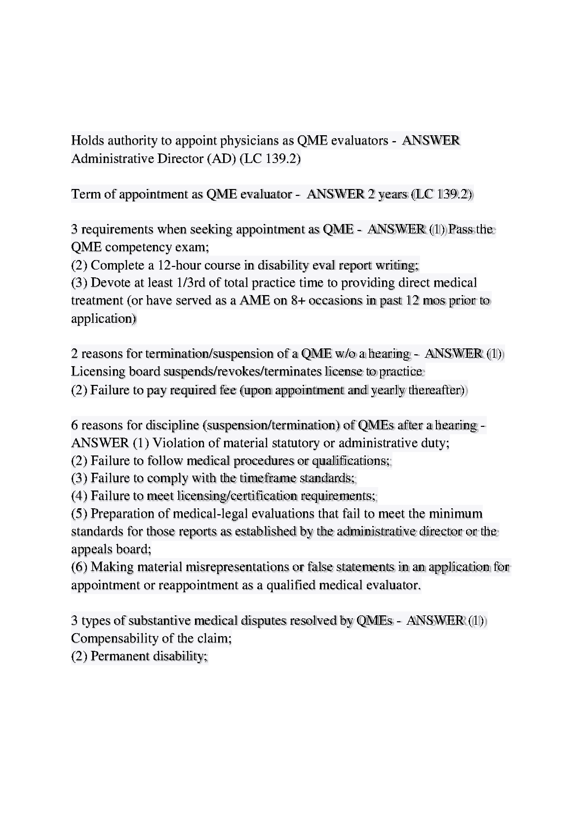 Ace your California Qualified Medical Examiner (QME) exam on the first try with our comprehensive test bank for the 2025/2026 testing cycle. This essential study resource features over 100 meticulously verified questions and detailed answers, covering all key topics of the QME examination. Designed to simulate the real exam experience, this guide will help you master the material, build confidence, and avoid costly resits. Get instant access to the newest version and take the first step towards becoming a certified QME.