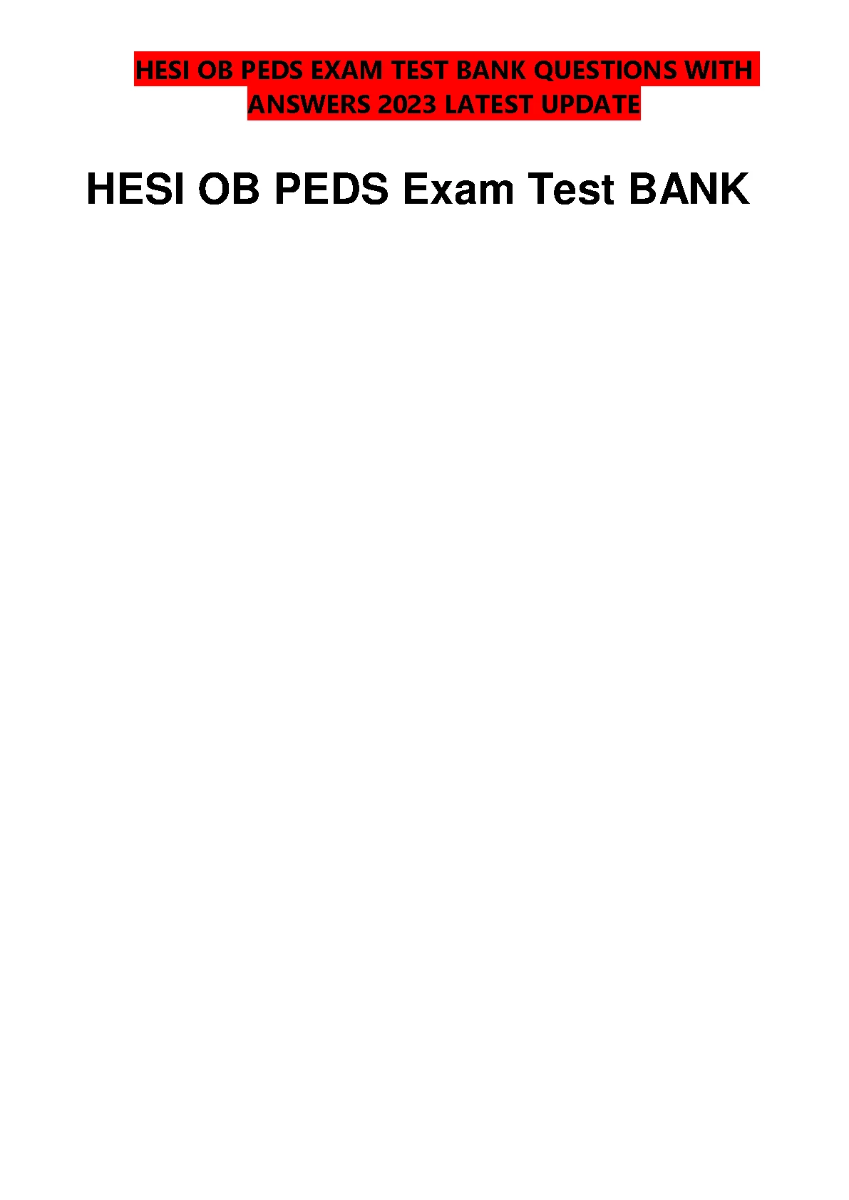 TEST BANK FOR HESI OB PEDS EXAM QUESTIONS WITH ANSWERS LATEST UPDATE 2023. DOWNLOAD on www.hackedexams.com INSTANTLY.