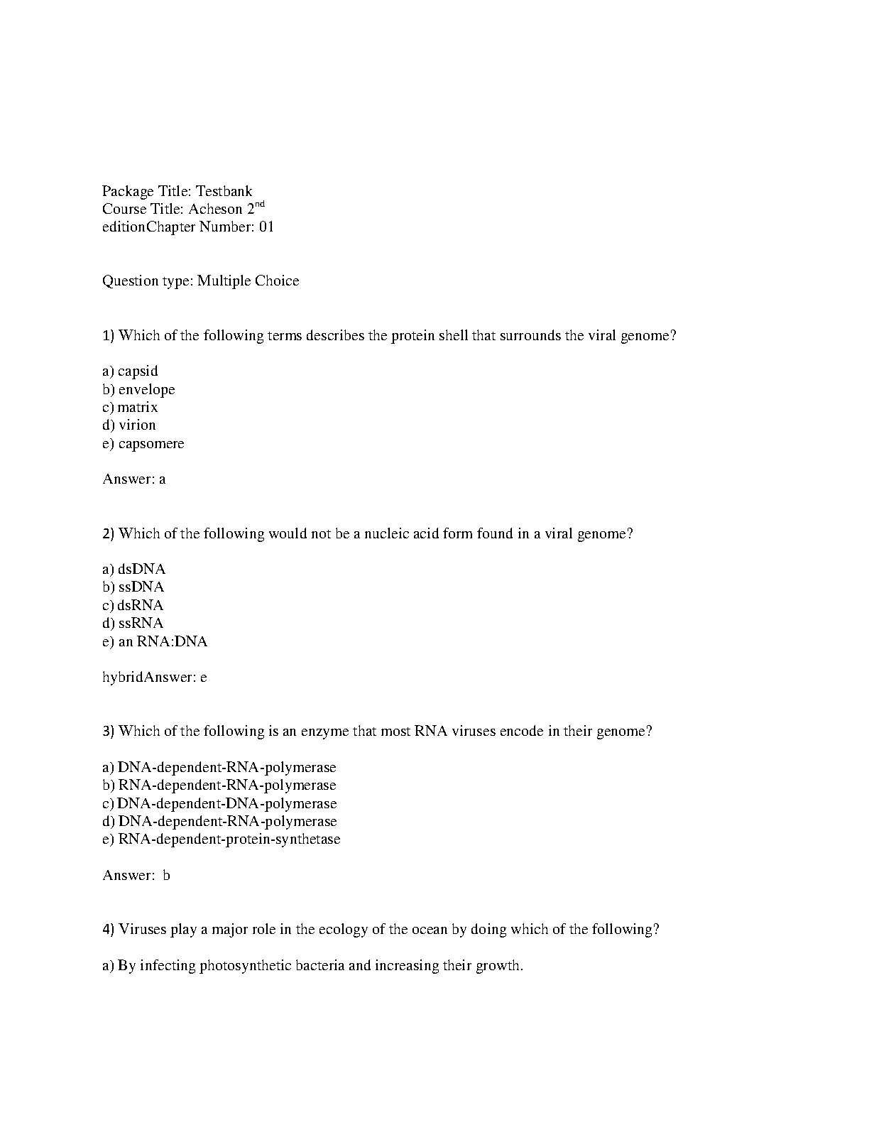 TEST BANK for Fundamentals of Molecular Virology 2nd Edition by Acheson. (All Chapters Covered)
