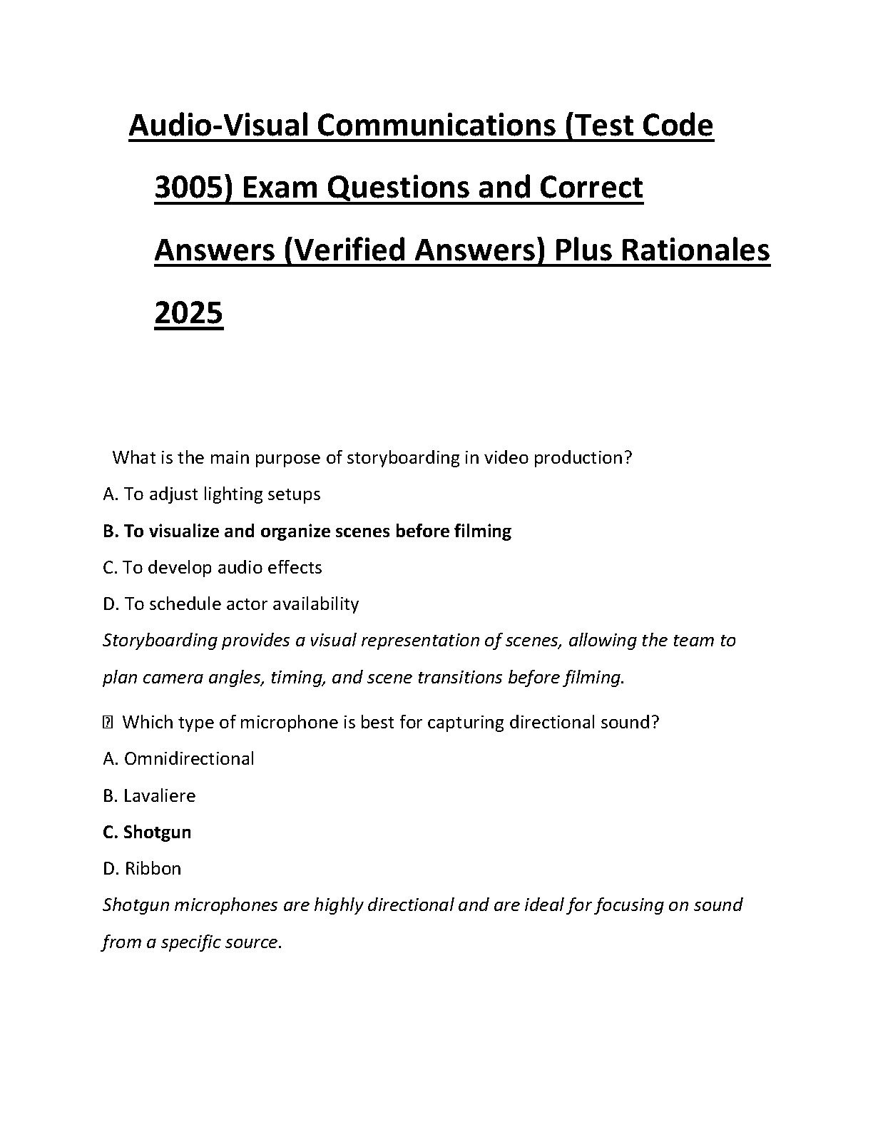 Audio-Visual Communications (Test Code 3005) 2025 Test Bank: Verified Exam Questions, Answers, and Rationales