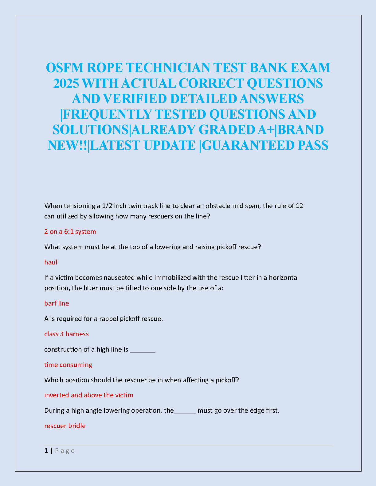 OSFM Rope Technician Test Bank Exam 2025: A+ Graded Questions & Verified Answers for Guaranteed Success