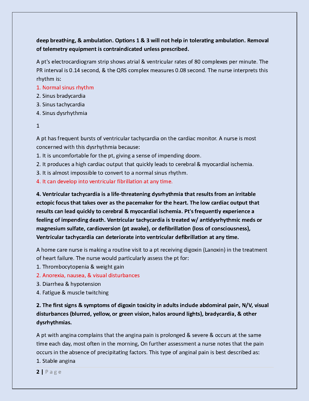 Cardiac Exam 1 Test Bank (2025 Latest Edition) - Verified Q&A with Rationales for A+ Grade