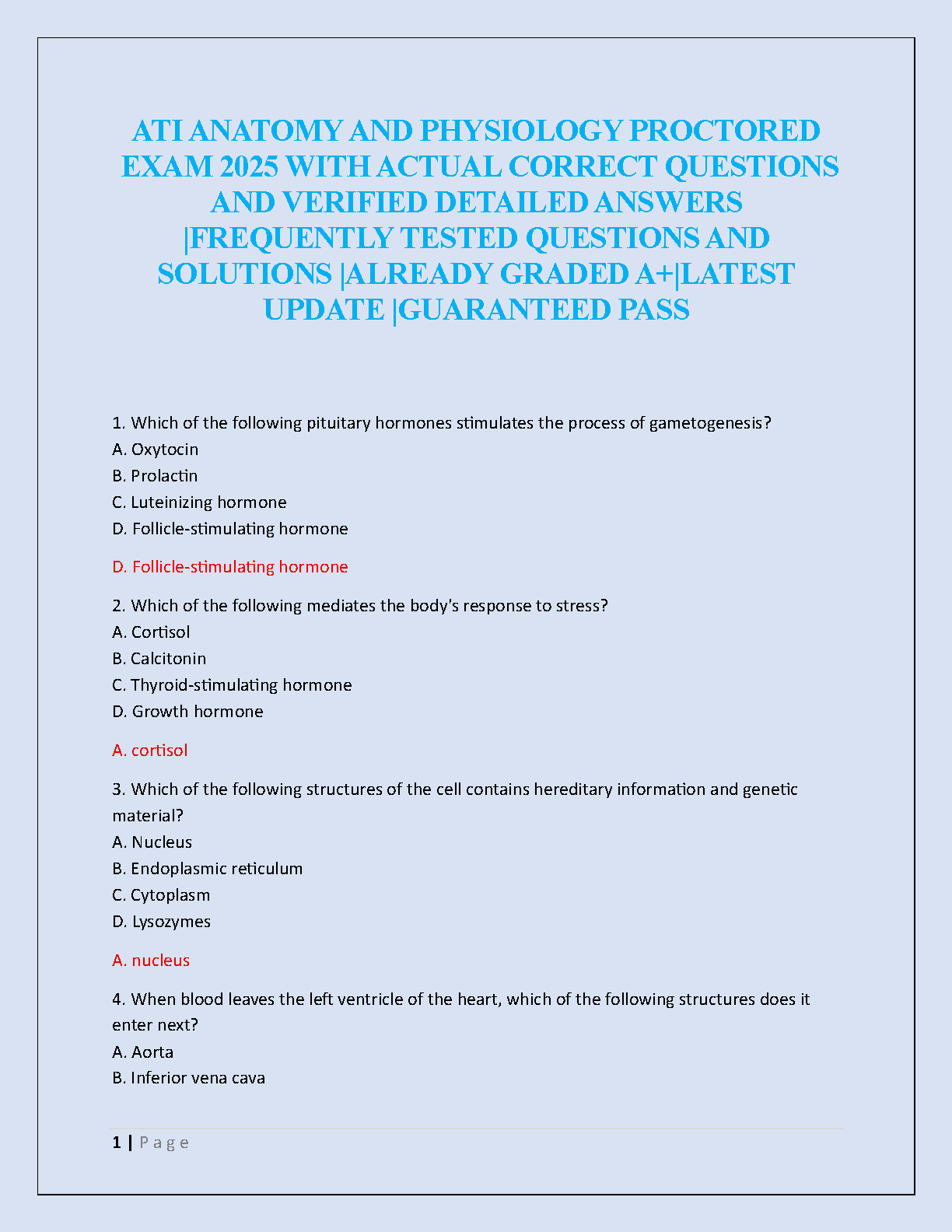 Master the ATI Anatomy and Physiology Proctored Exam with this comprehensive 2025 test bank. This resource provides a full collection of frequently tested questions, each accompanied by detailed, verified answers to ensure you understand the core concepts. Designed to mirror the actual exam, this study guide covers all essential topics in anatomy and physiology. It is an invaluable tool for nursing students aiming for an A+ grade and seeking to pass on their first attempt. Get the latest updated material to confidently prepare and excel in your proctored assessment.